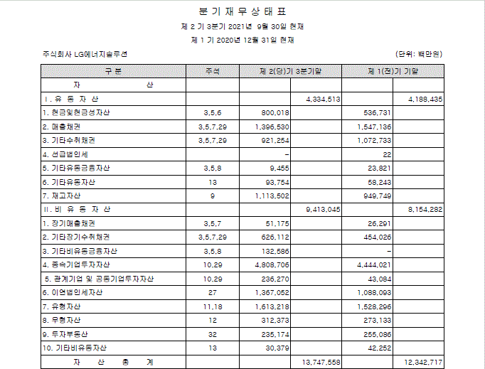 - 아래는 LG에너지솔루션 제2기 3분기 재무제표에 대한 검토보고서입니다. -