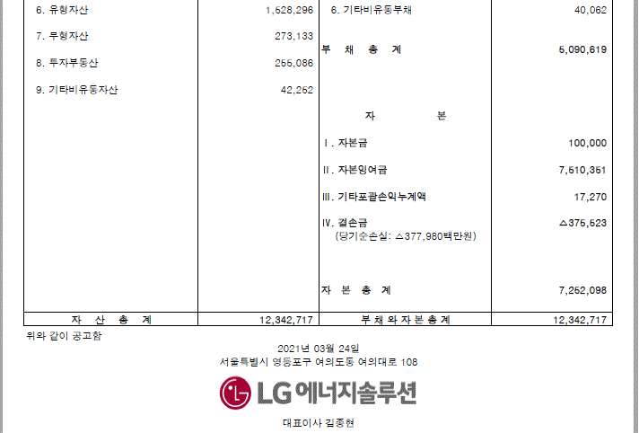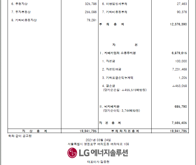 - 아래는 2021.04.05.에 공시한 제1기 결산공고이다 -