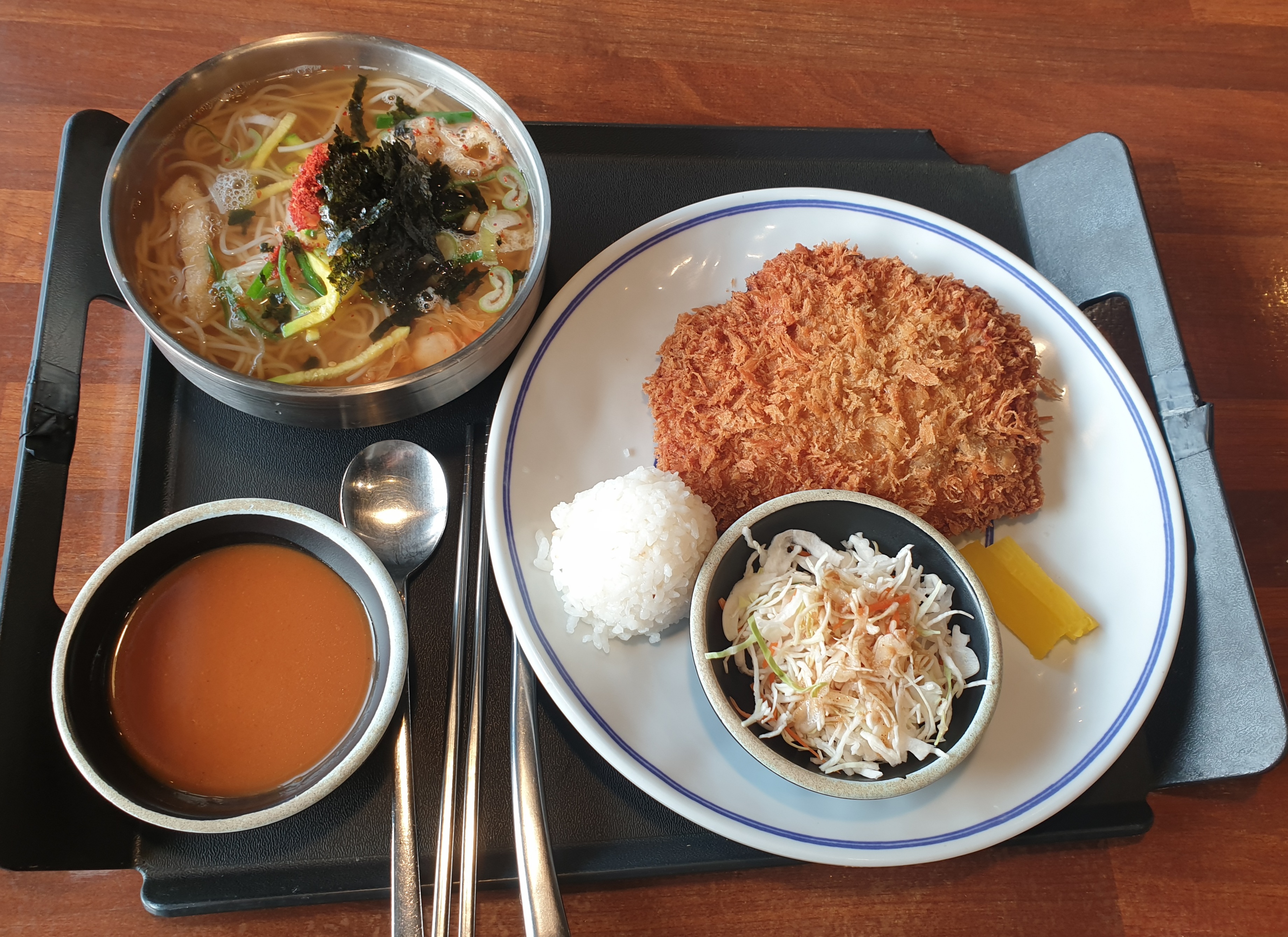 재방문 시 (돈가스+잔치국수) 세트메뉴를 시켰는데, 돈가스가 수제 돈가스라서인지 겉바속촉으로 치아가 약한 사람도 부담없이 먹을 수 있는 음식으로, 탄수화물과 단백질 조합으로 최상의 메뉴이다.