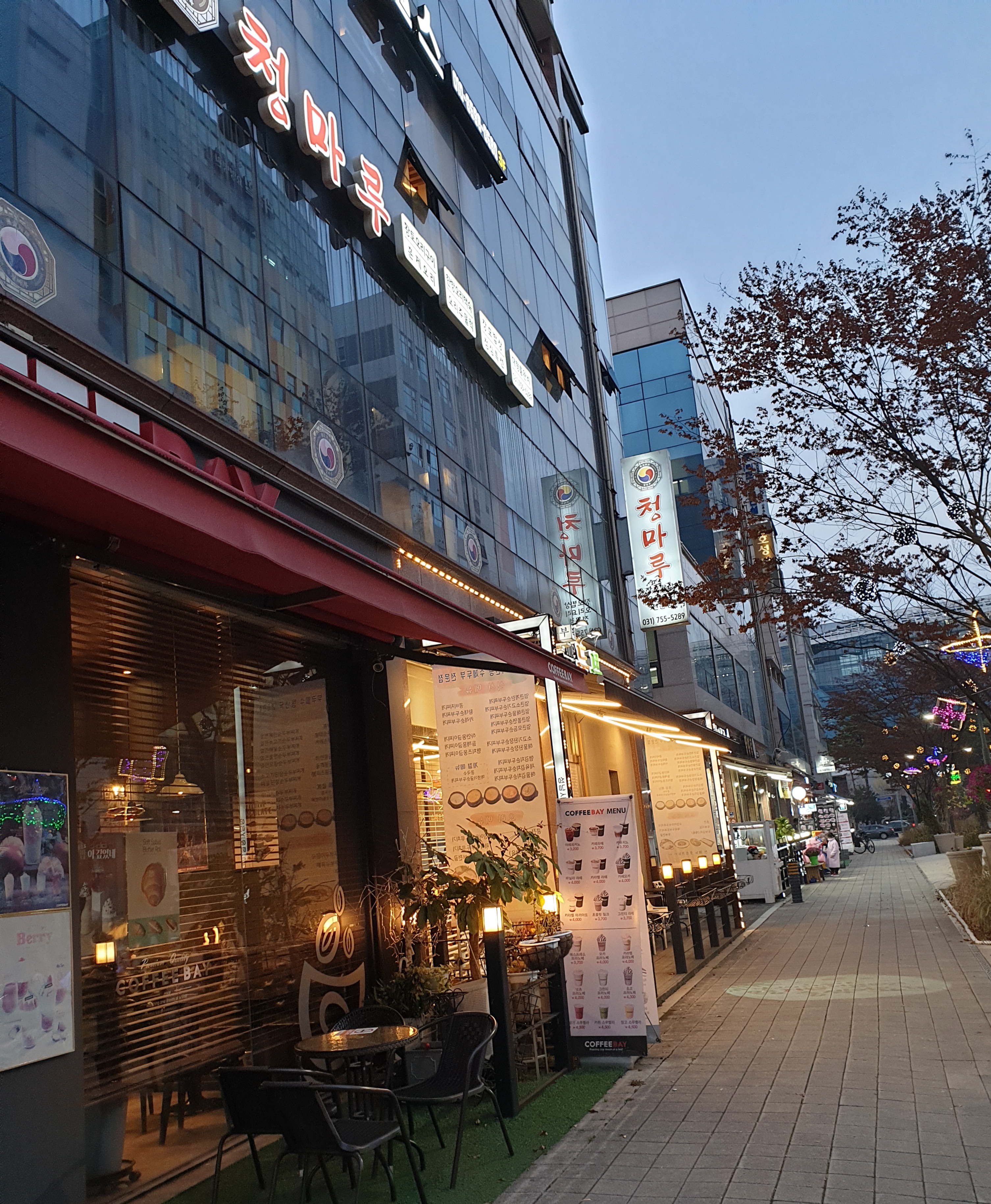 성남시청 앞 먹자골목 입구에서 100m 정도 걸어가면 청마루가 보인다