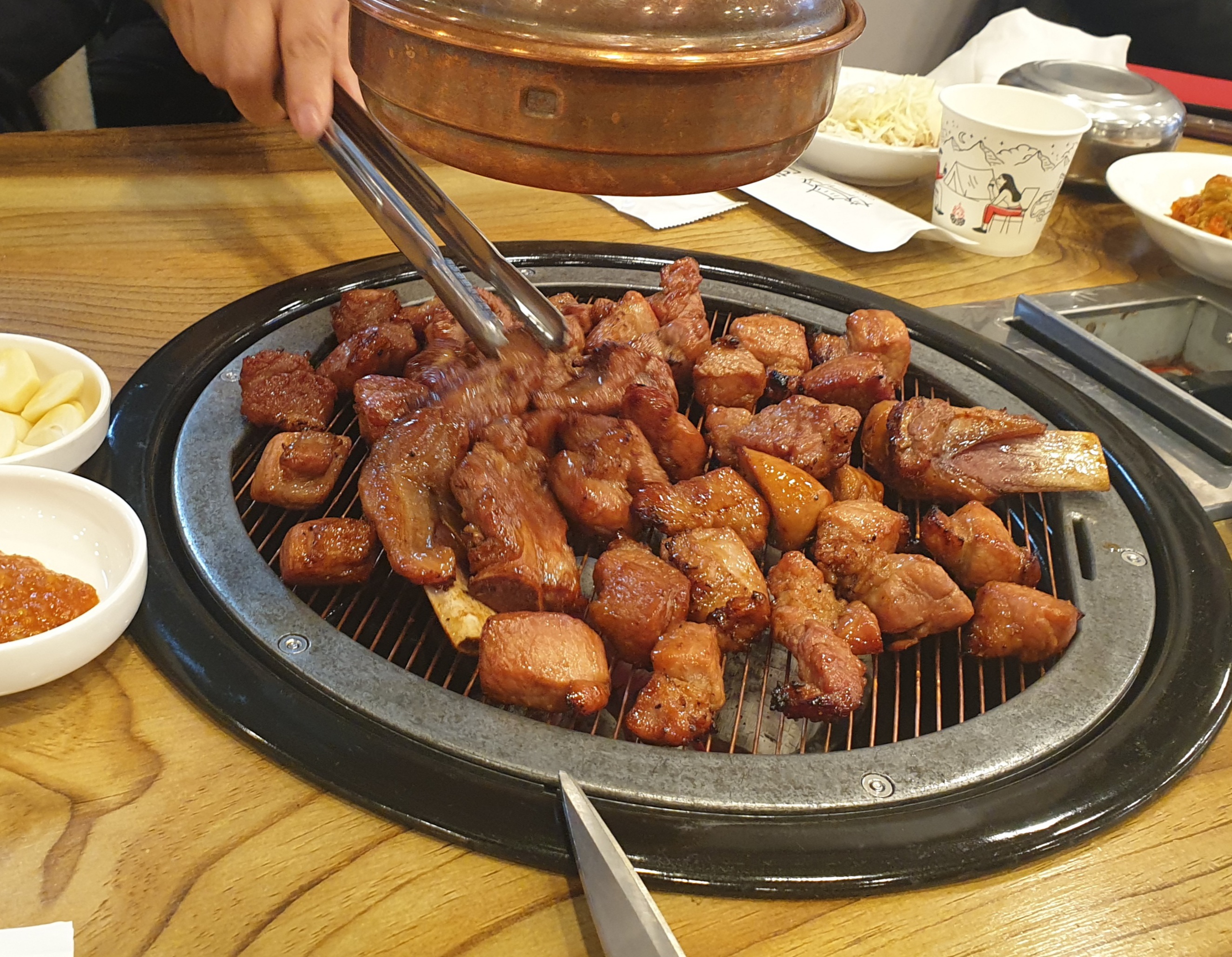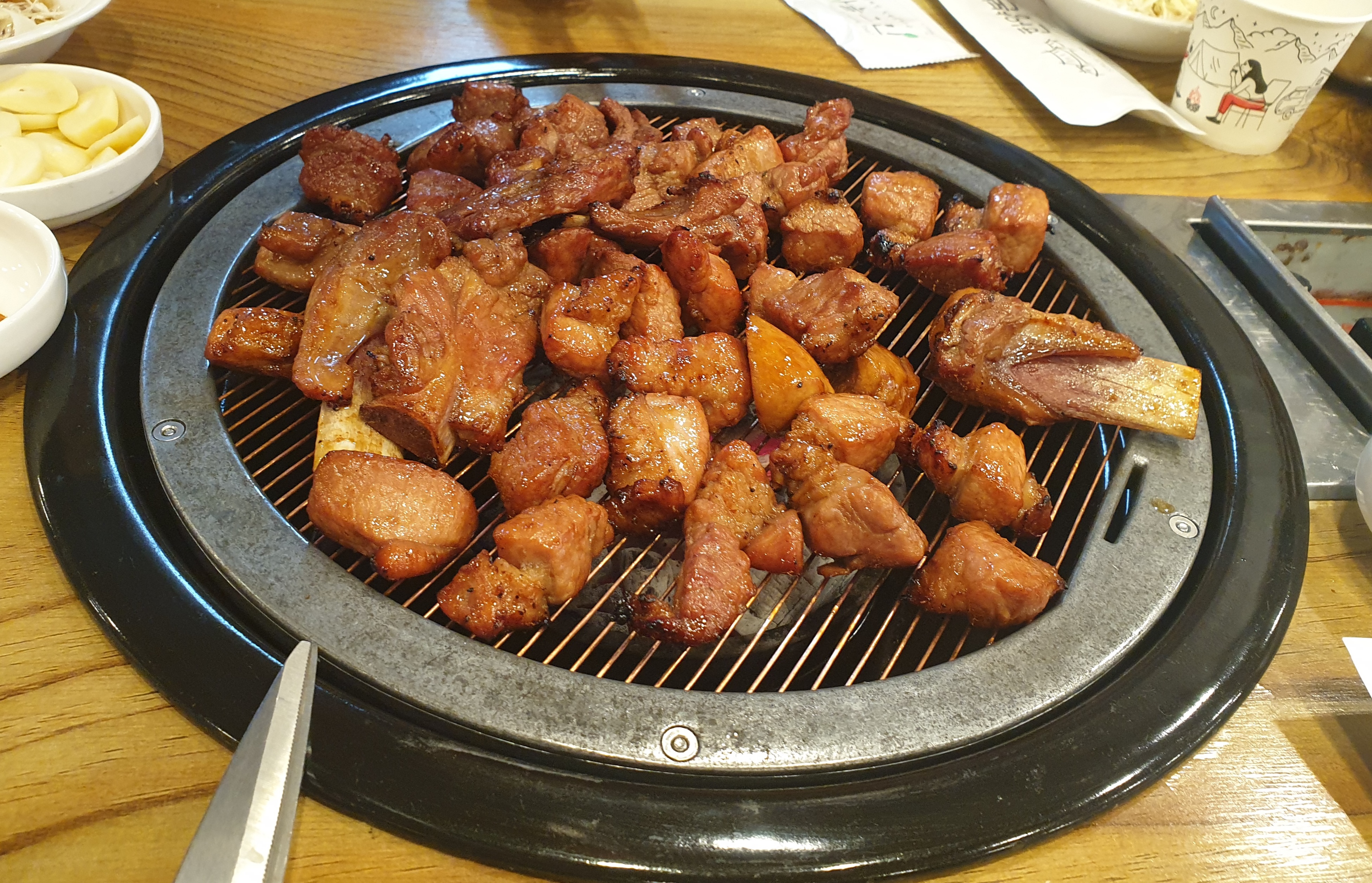 초벌 돼서 나온 고기라 살짝만 익혀서 먹으면 된다.