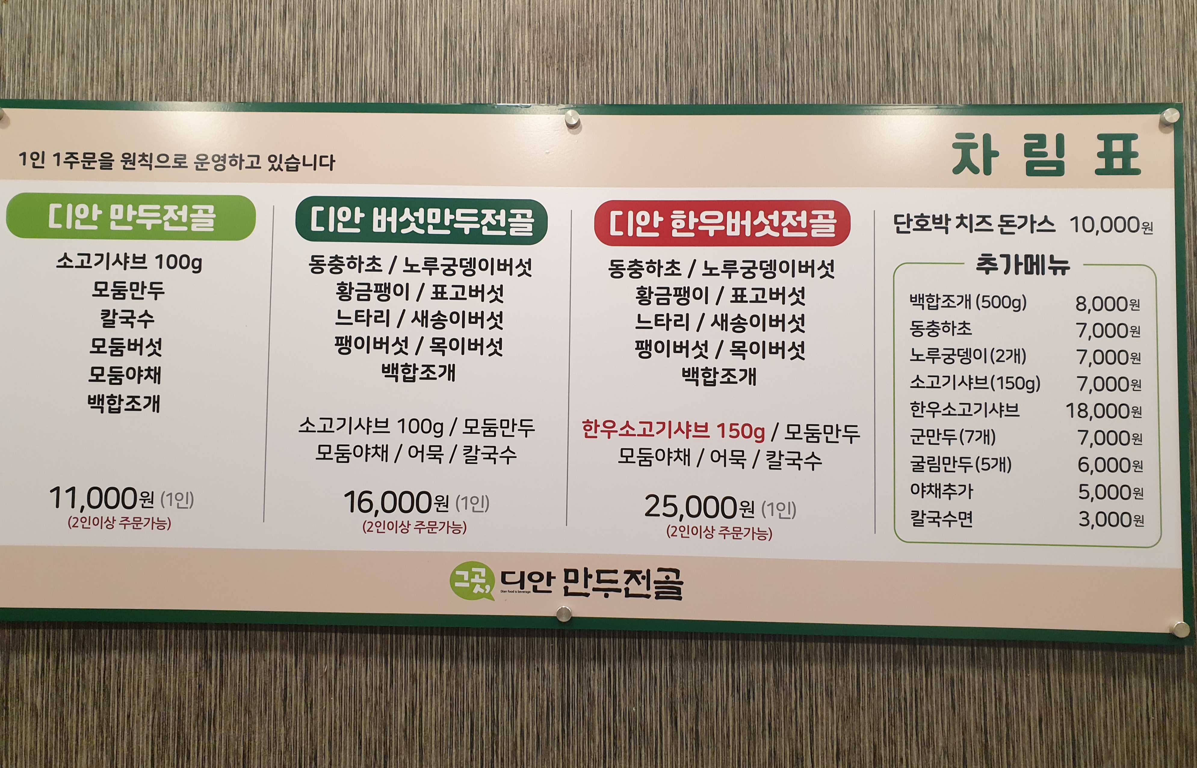 우리 일행은 디안만두전골을 주문했다.