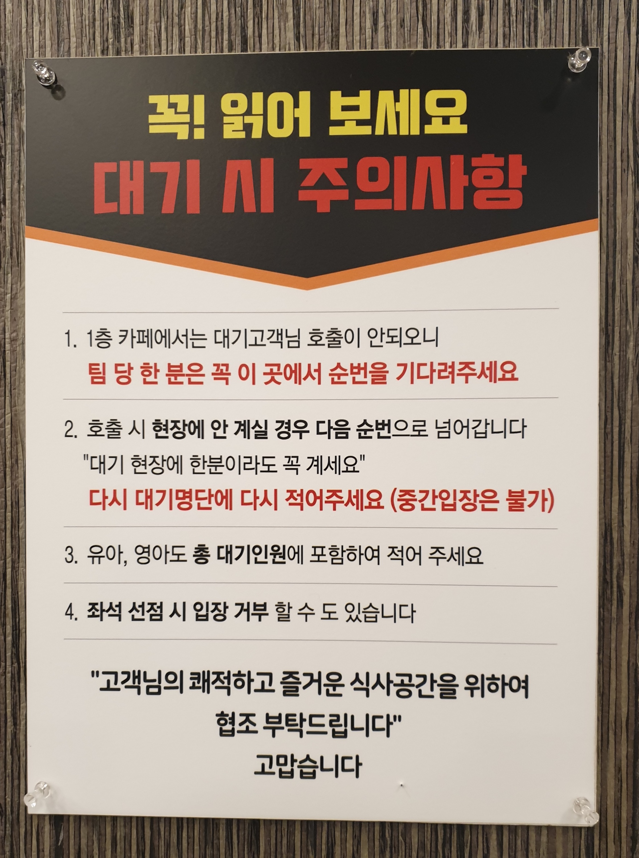 대기 시 주의사항들이 적혀있다.