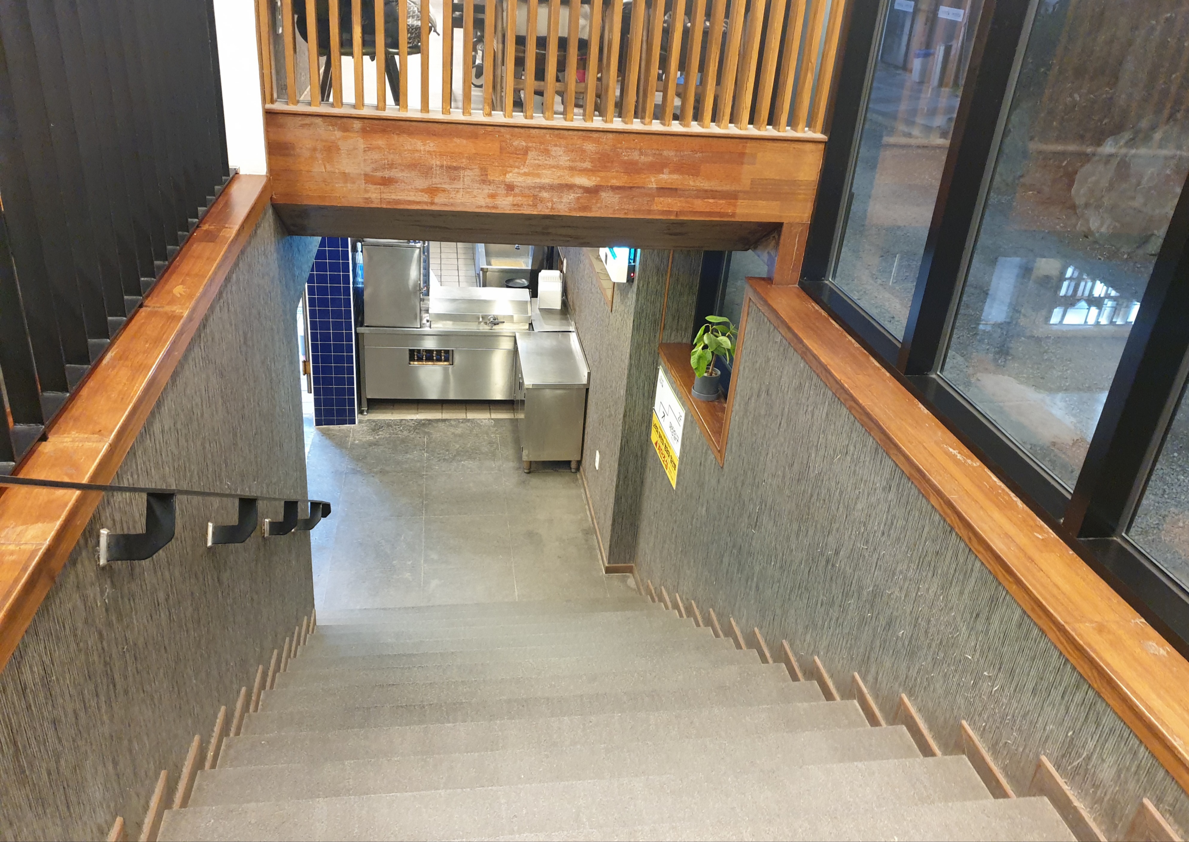 1층은 포장전용 판매 매장으로 2층으로 올라가야 한다.