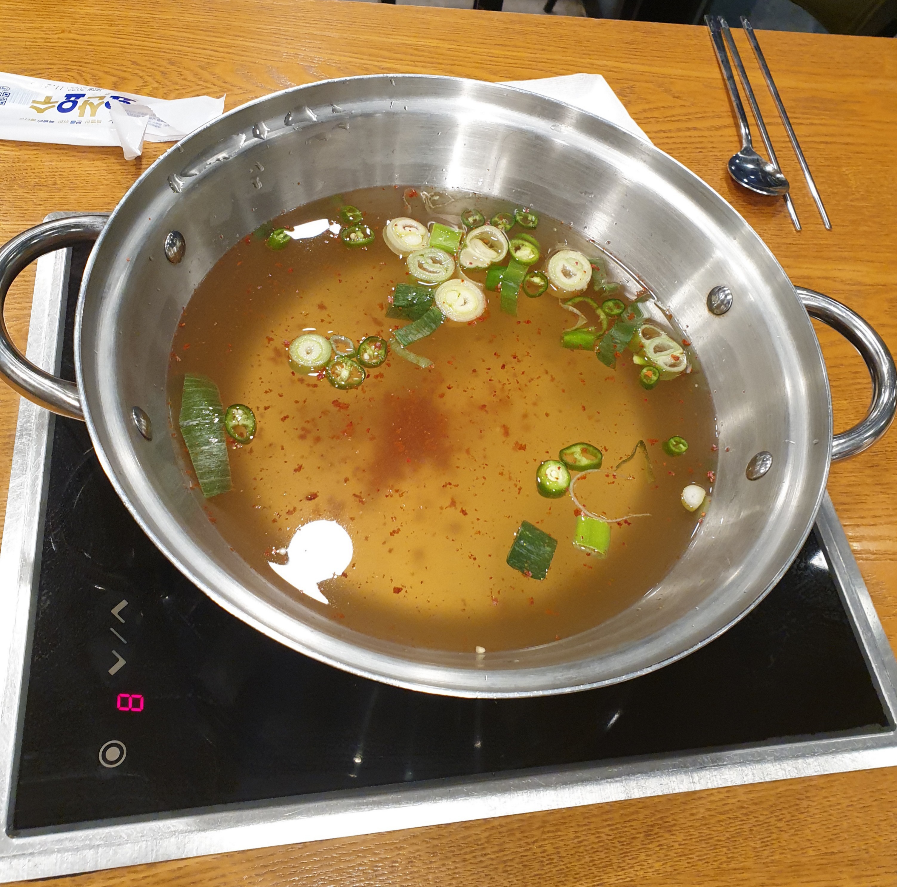 자리를 안내받고 나면 먼저 육수가 나온다.
