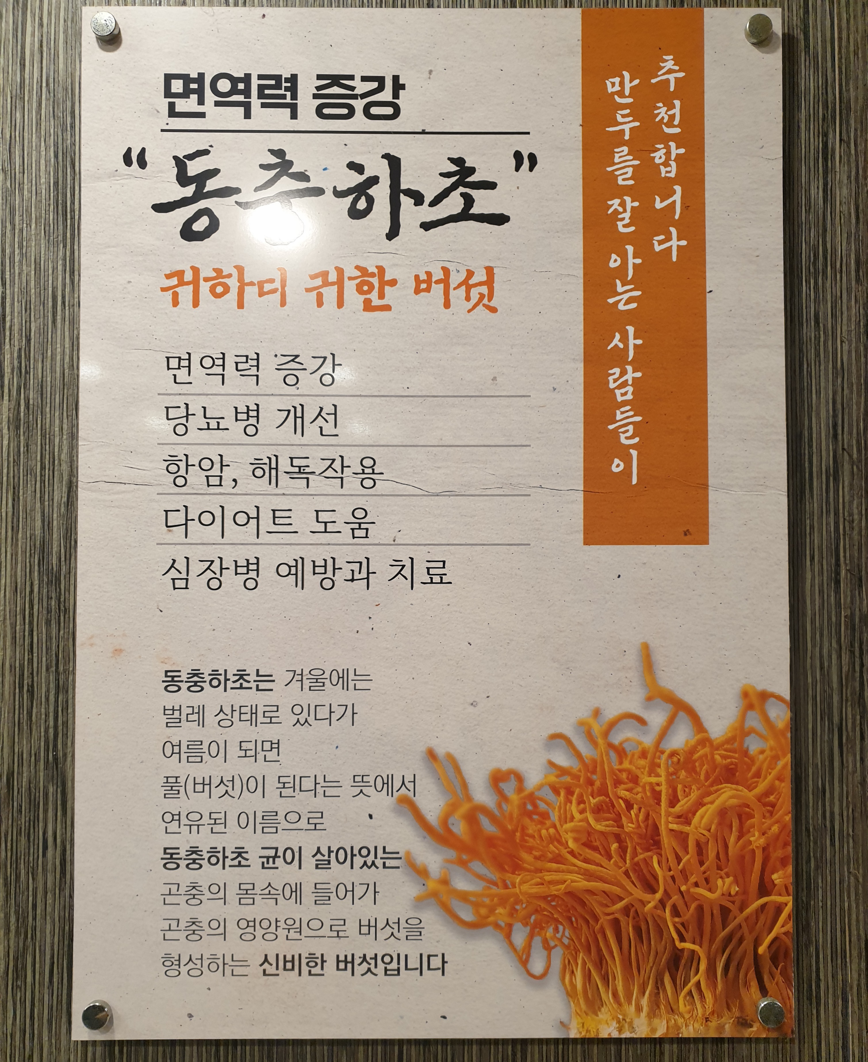 동충하초가 좋다는 글귀다.