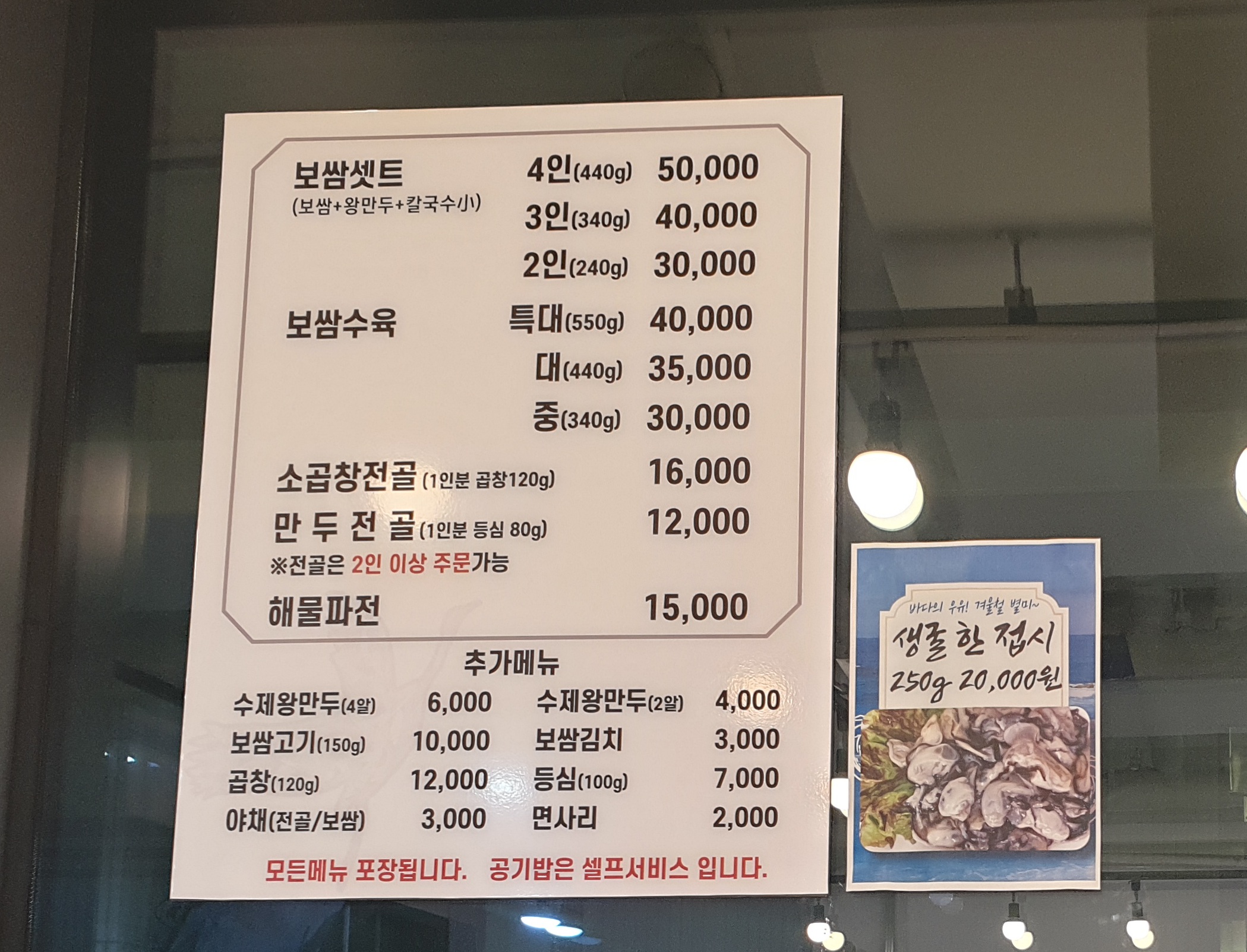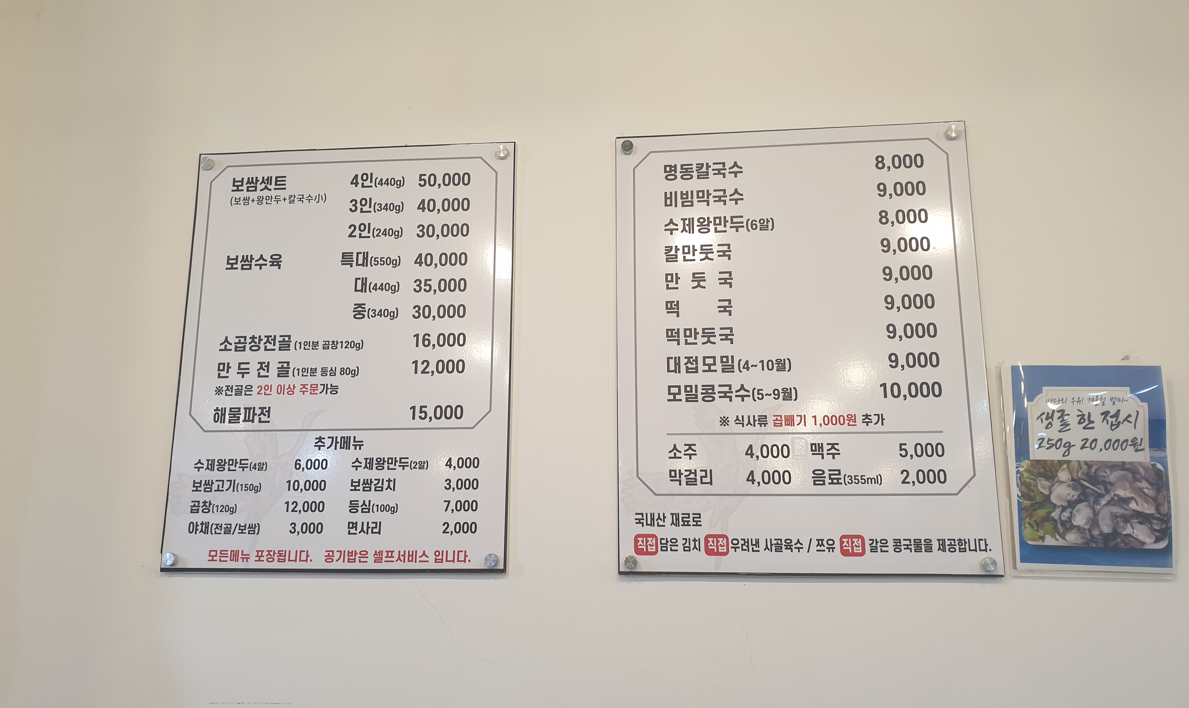 우리 일행은 보쌈수육과 칼국수를 시켰는데, 보쌈수육은 방문전에 미리 주문하고 갔다.