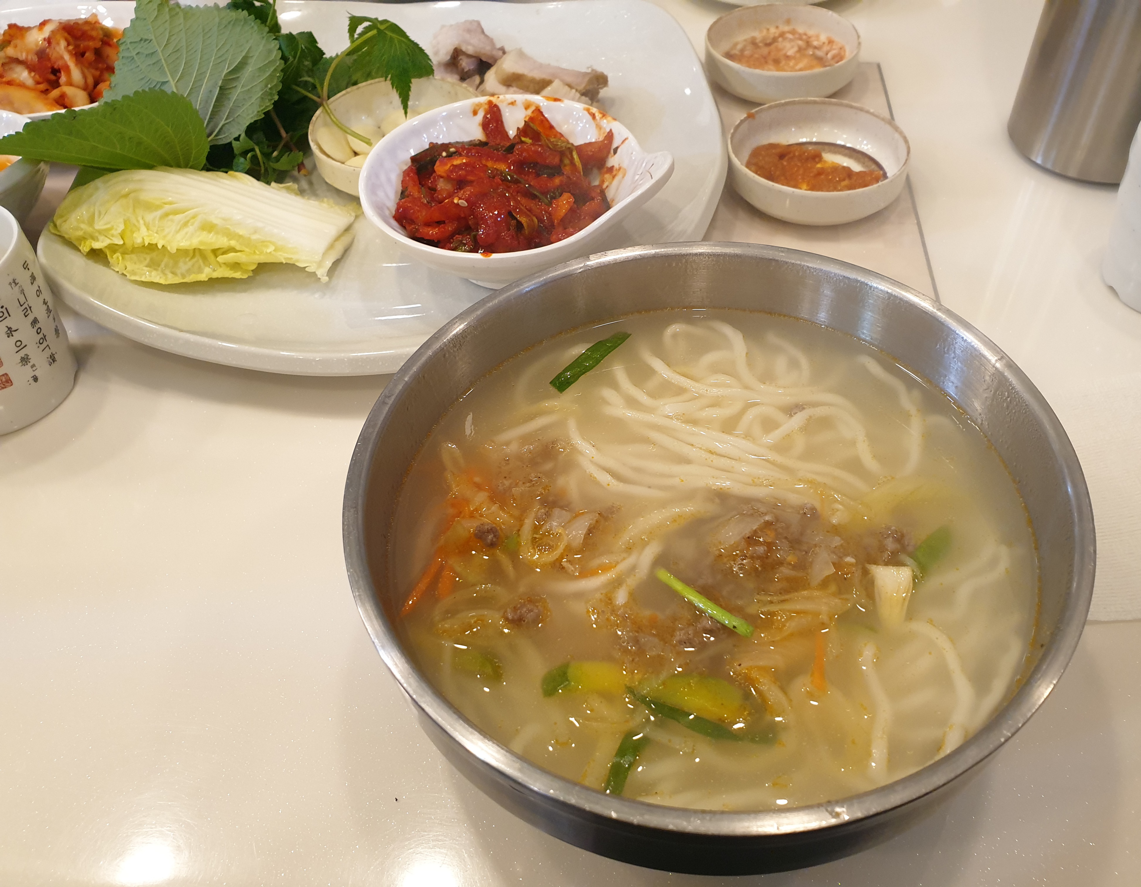 연일 최저 영하 8~9도의 맹추위를 보이고 있는 요즈음 뜨끈뜨끈한 국물과 고기 한 점이 생각나서 들른 곳이 고등동 맛집인 명동칼국수집이다.