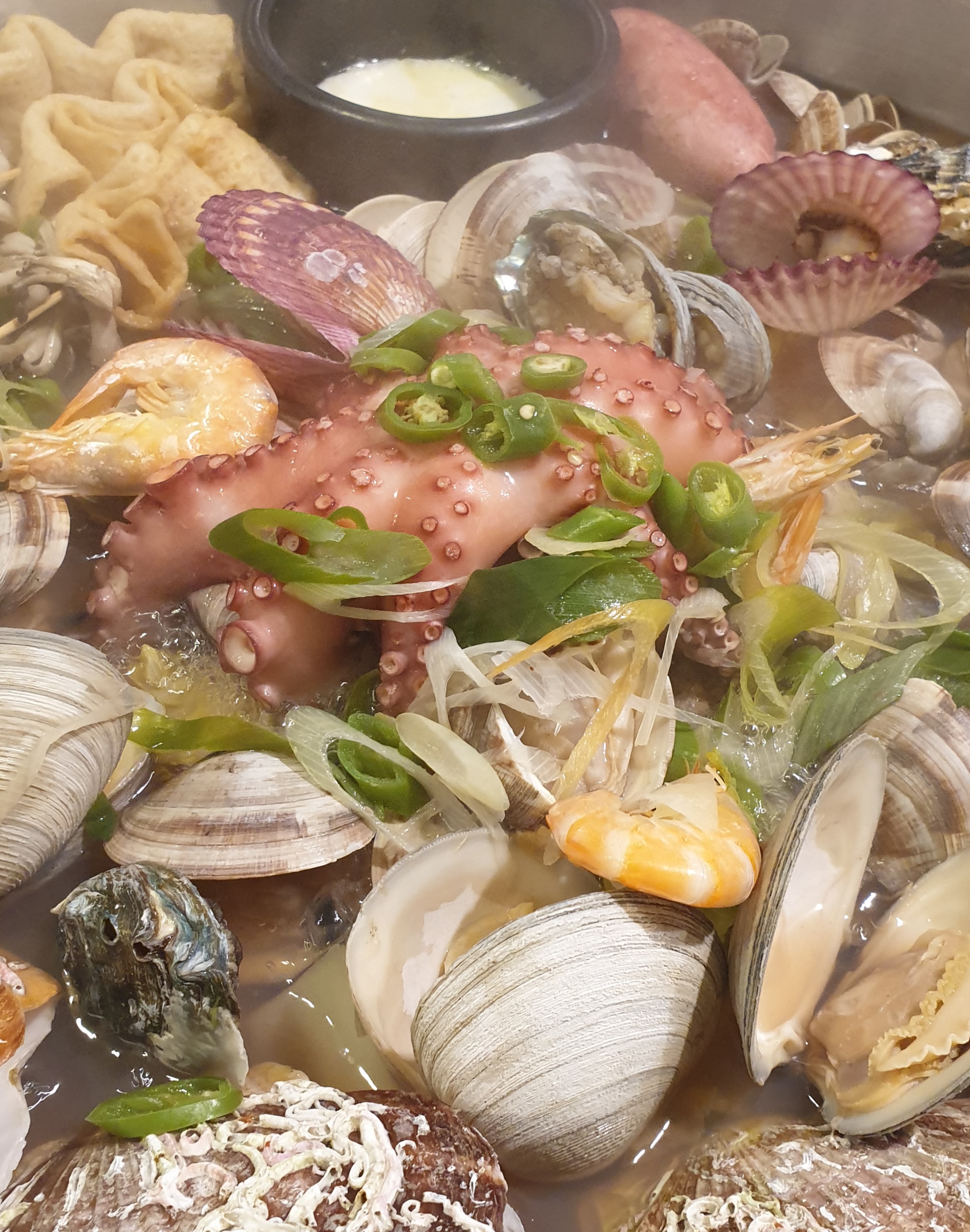 오징어, 문어, 석화, 새우, 꼬치오뎅 등 푸짐하게 들어있다.