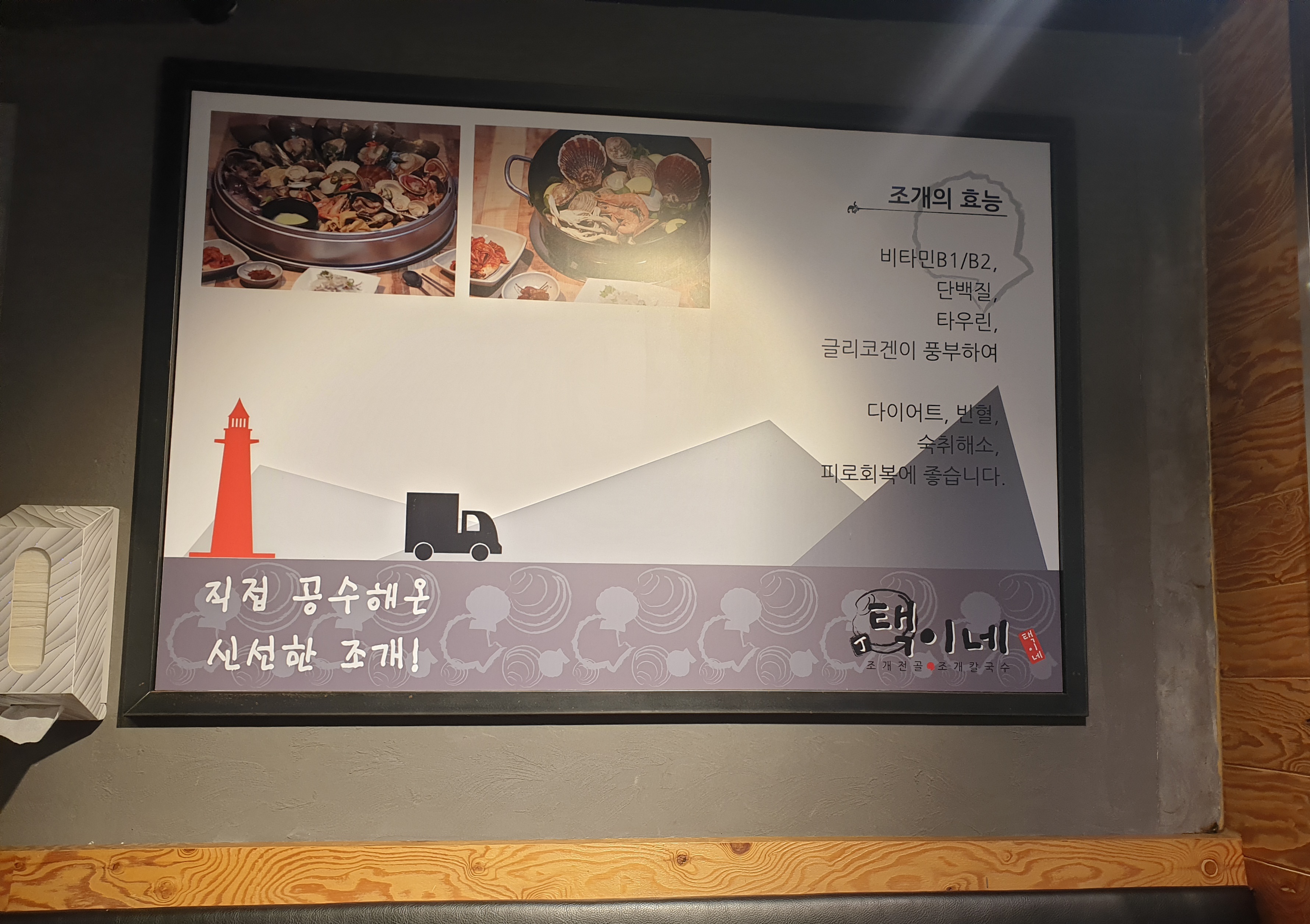 ※ 조개의 효능 (식당 내부에 붙어 있는 글 발췌)
