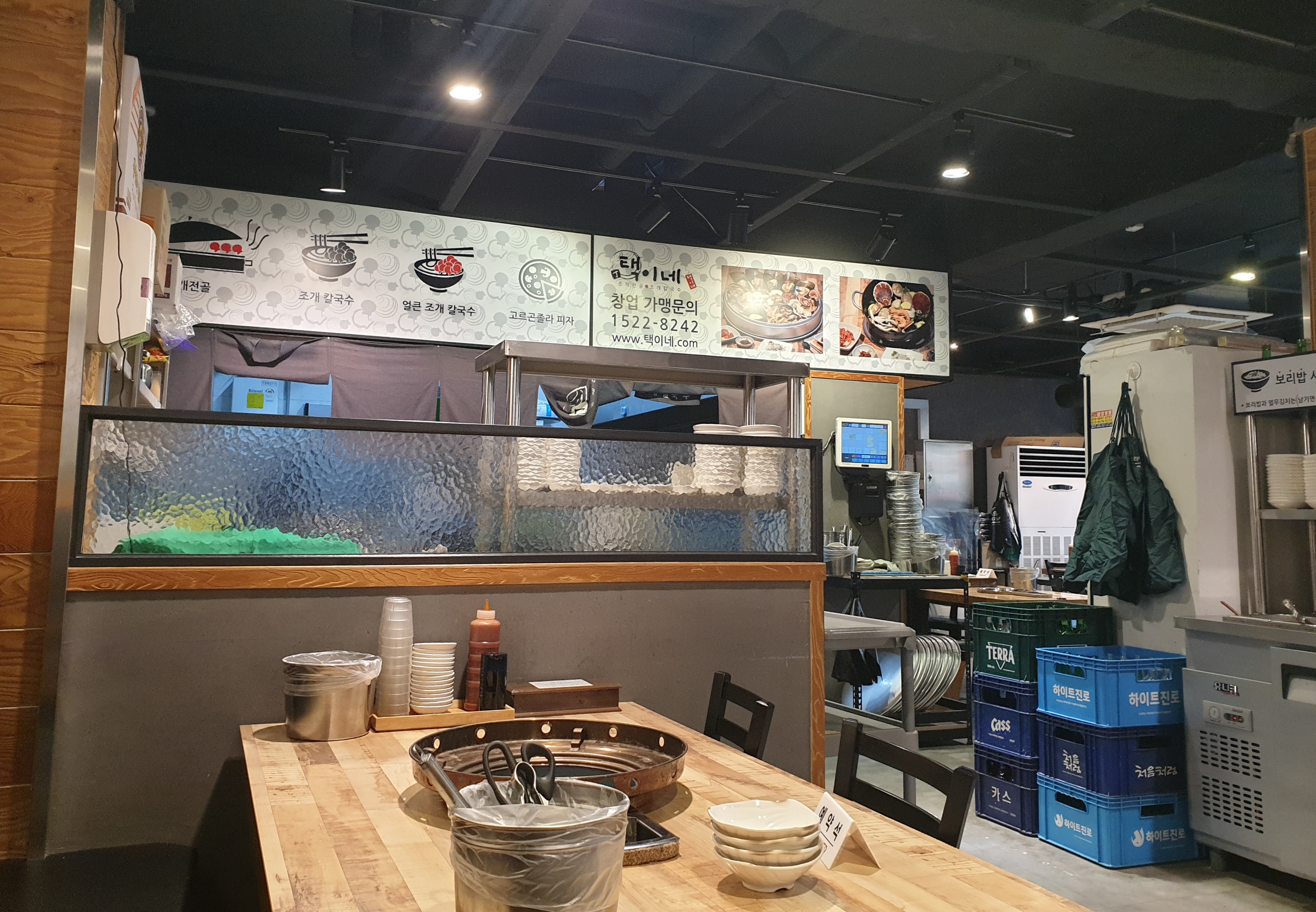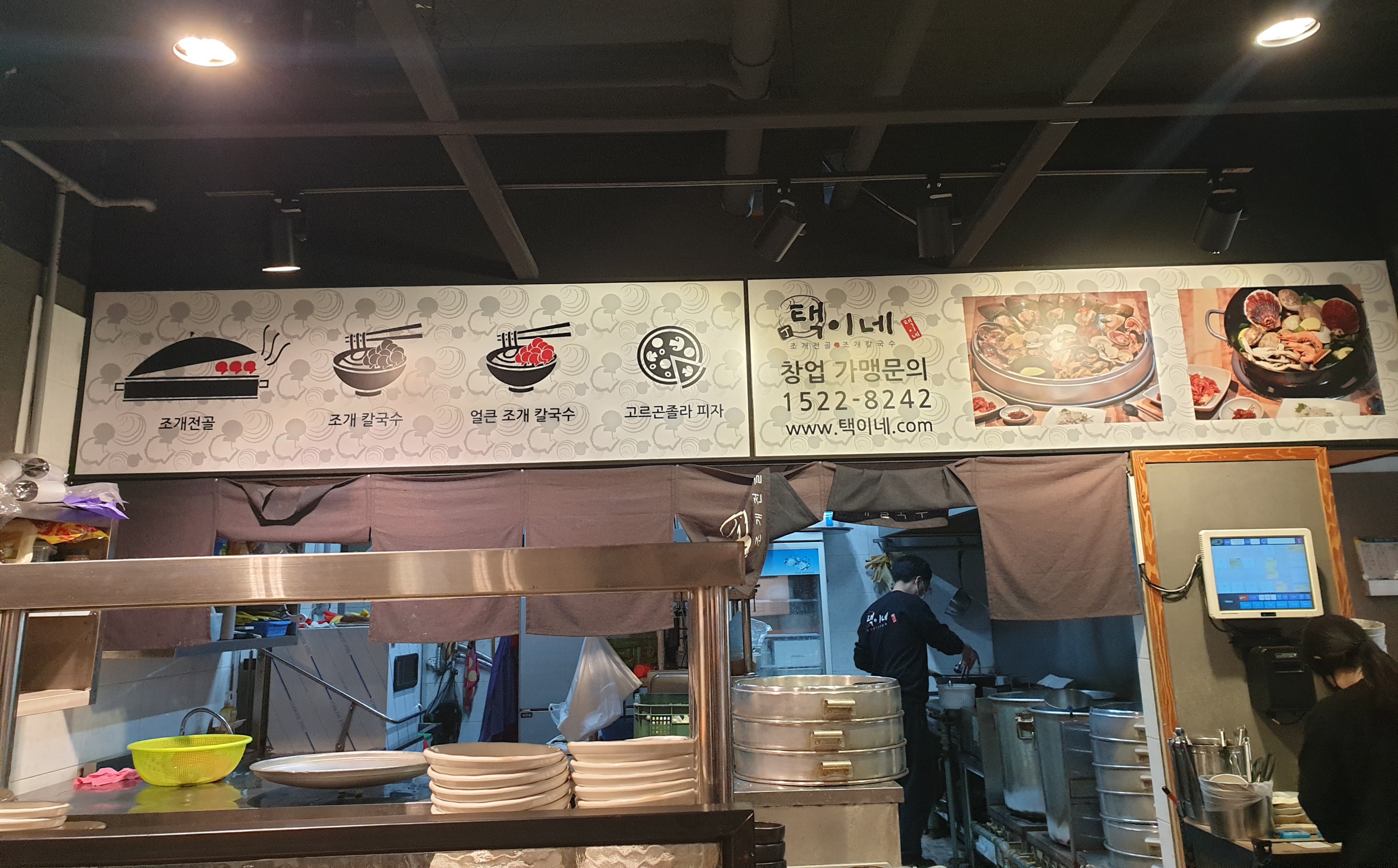 여기 미금역 먹자골목에는 오래된 맛집이 많은데, 택이네 조개전골은 체인점으로 역사가 그리 오래된 식당은 아니다. 사진에도 보이듯이 오히려 서울감자탕이라던지 전통춘천닭갈비집이 더 유명하다.