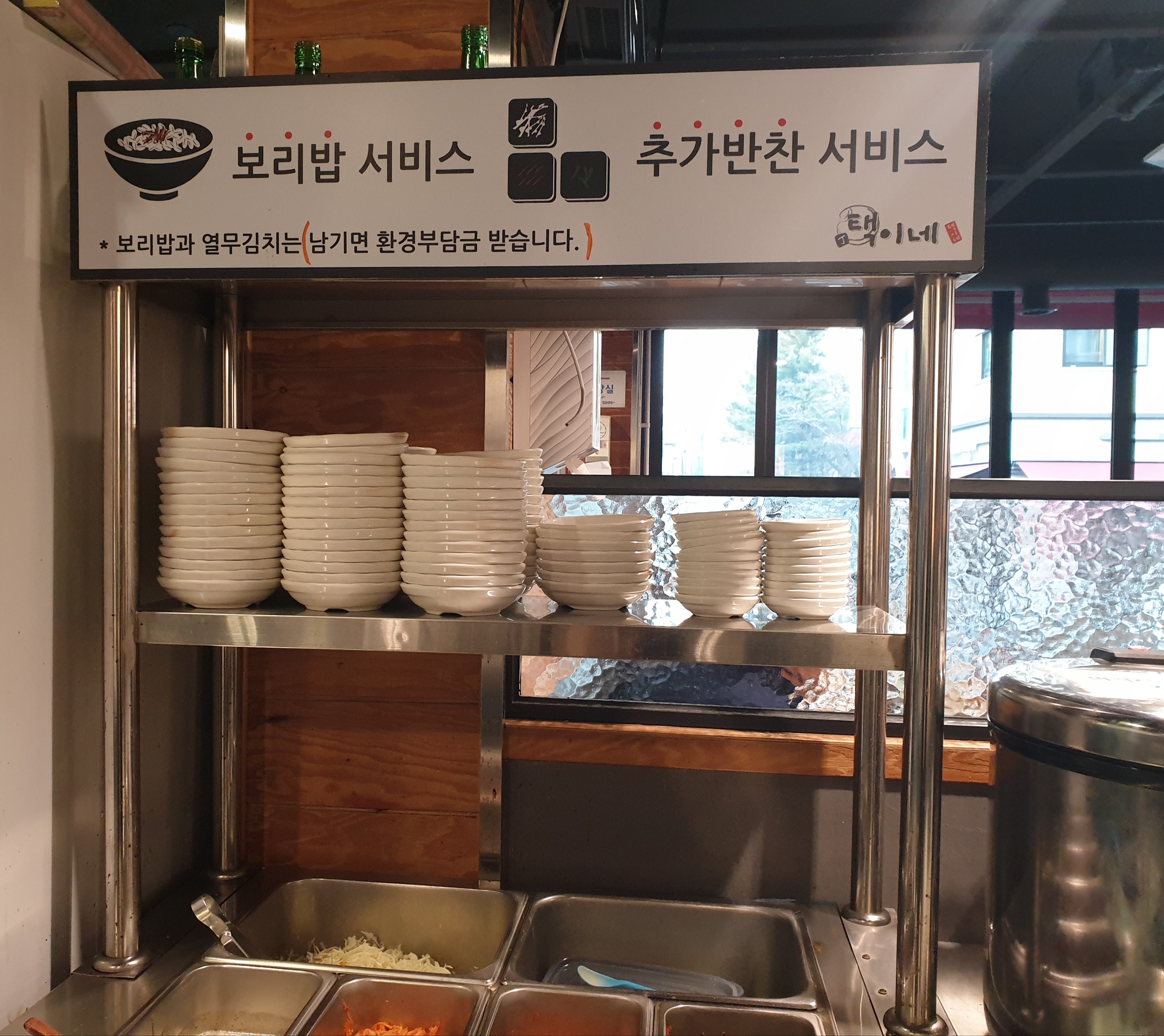 보리밥 서비스와 추가 반찬 서비스가 있는데,