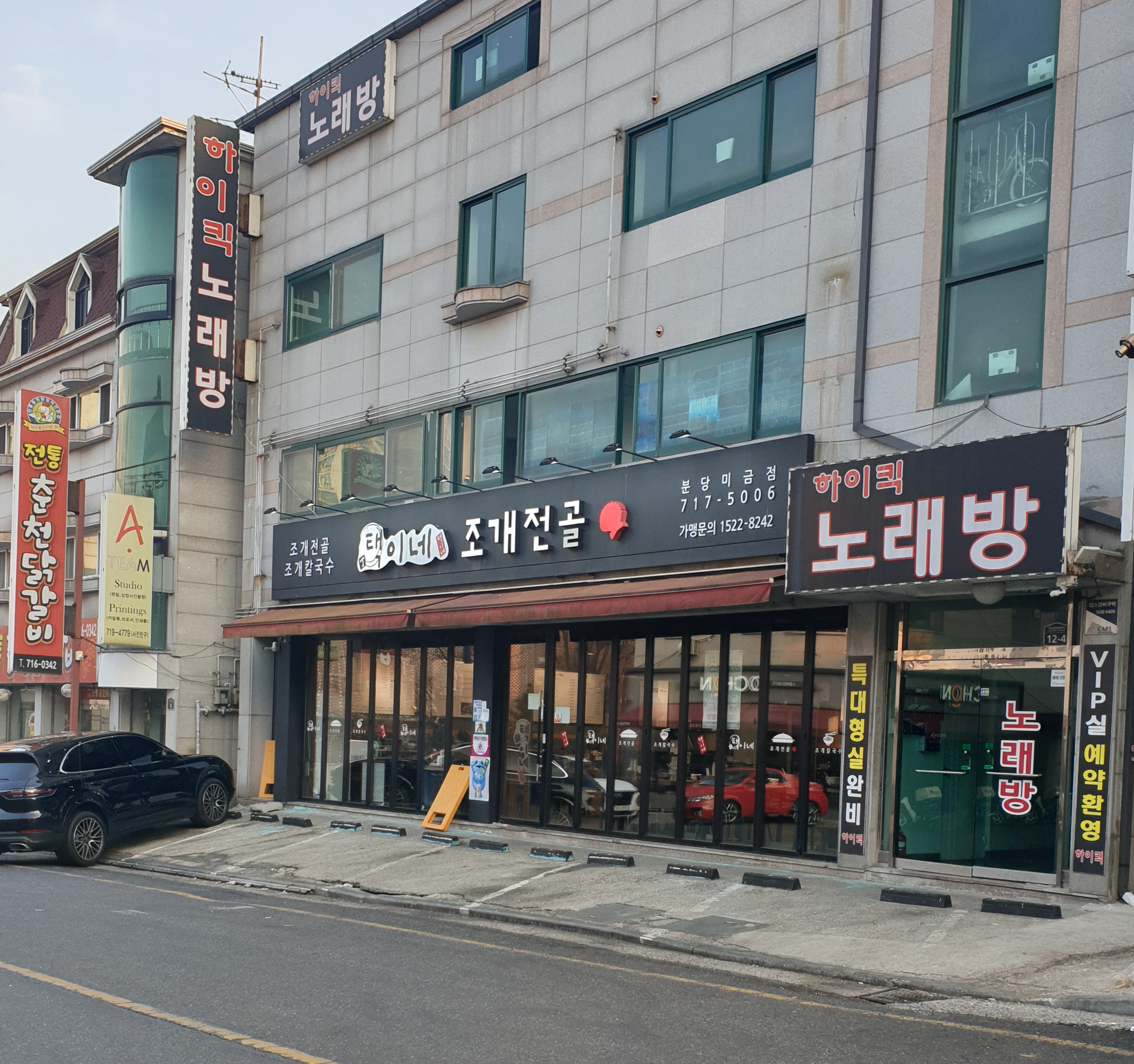 미금역 먹자골목에 위치한 조개전골 식당 전경으로