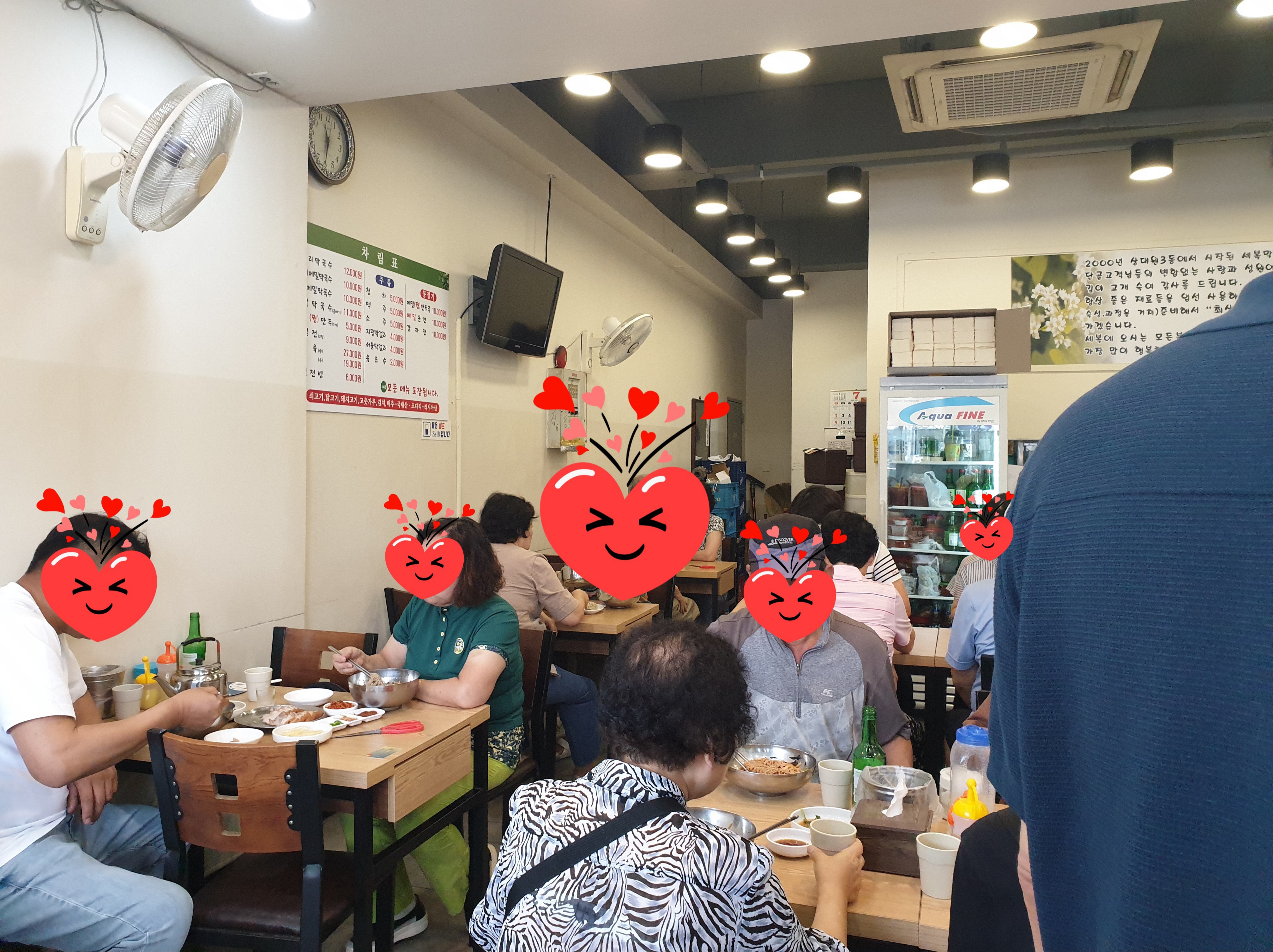 우리 일행은 겨우 자리를 잡을 수 있었다.