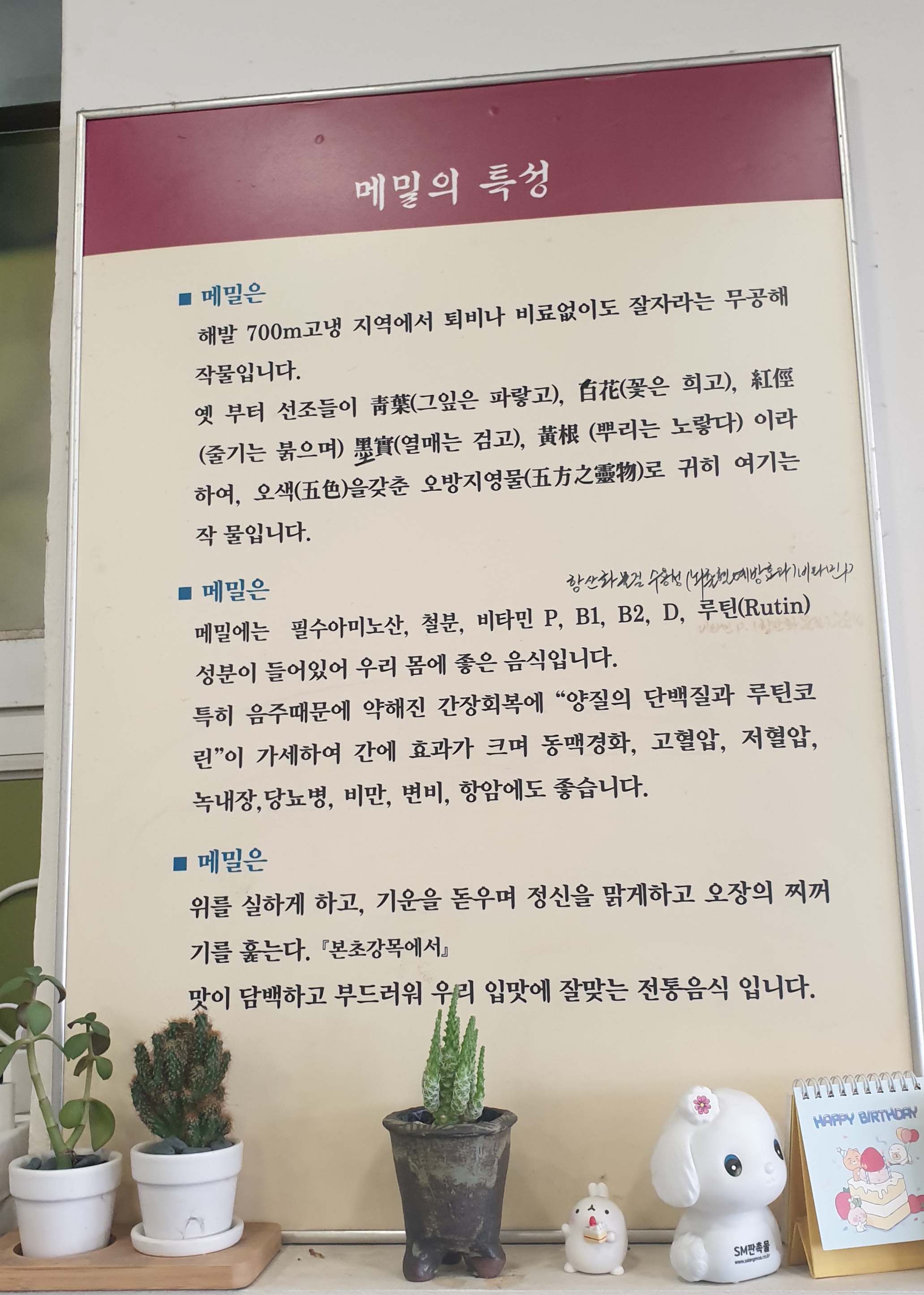 메밀의 특성에 대해 벽면에 안내문이 붙어있다.