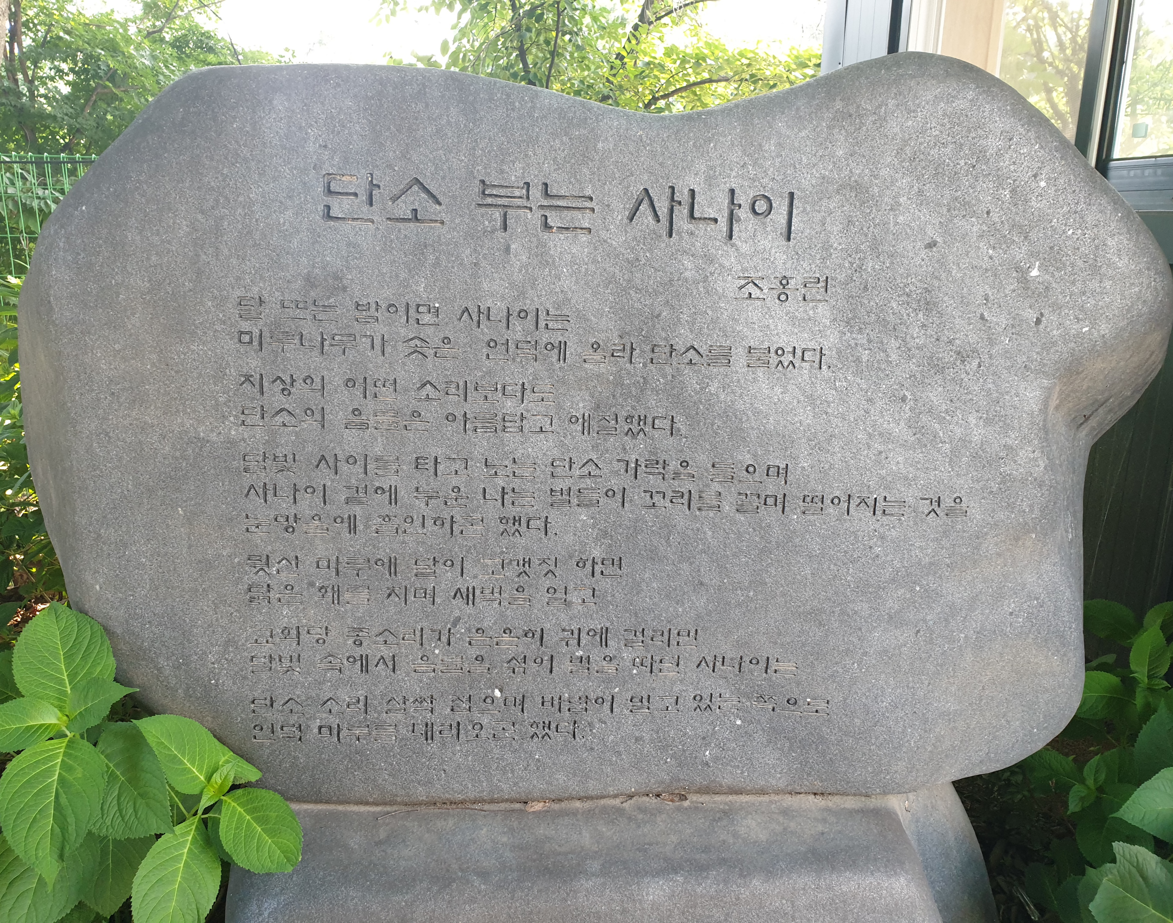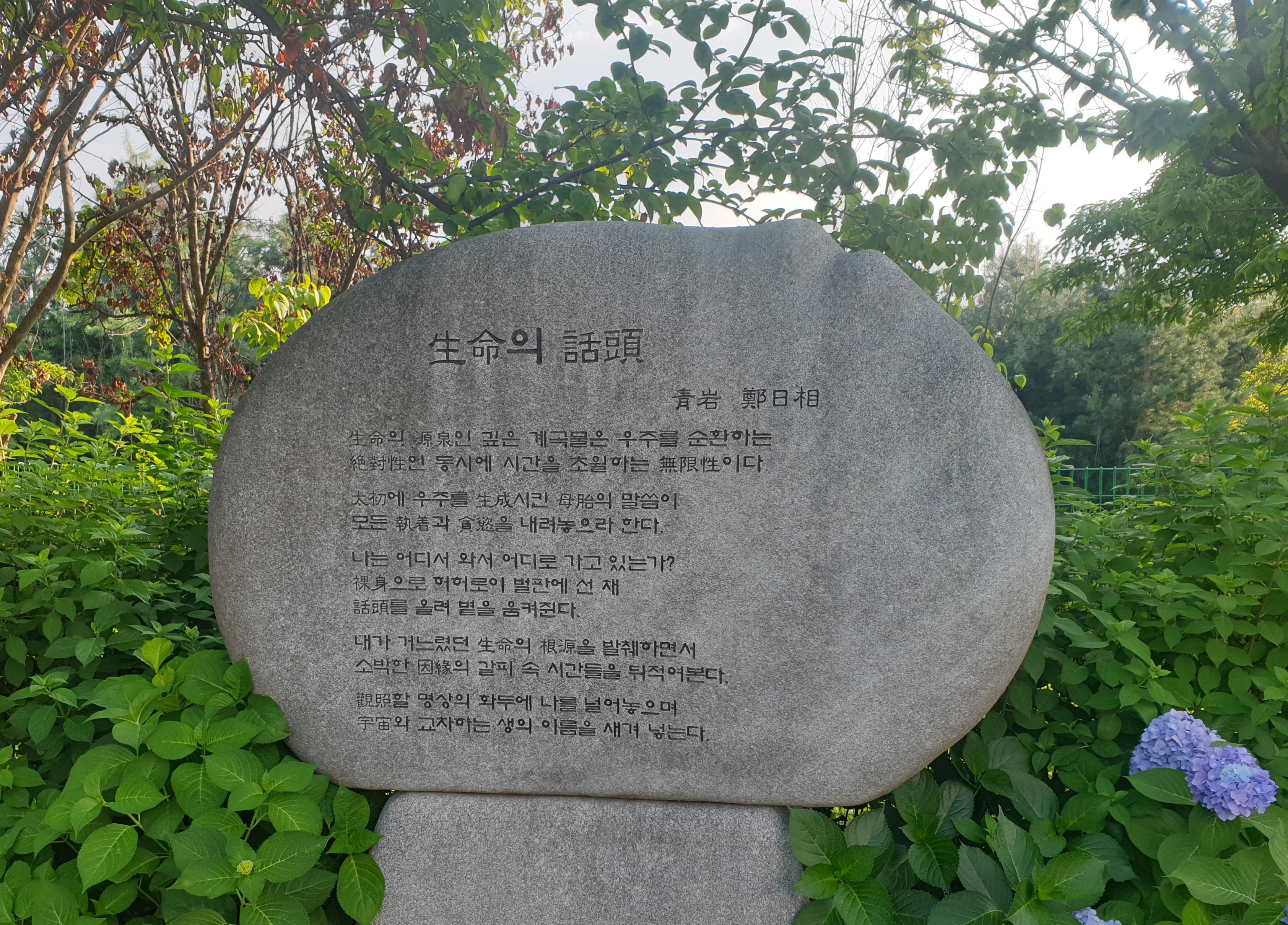 분수대와 다양한 조형물, 시비 등이 설치되어 있다