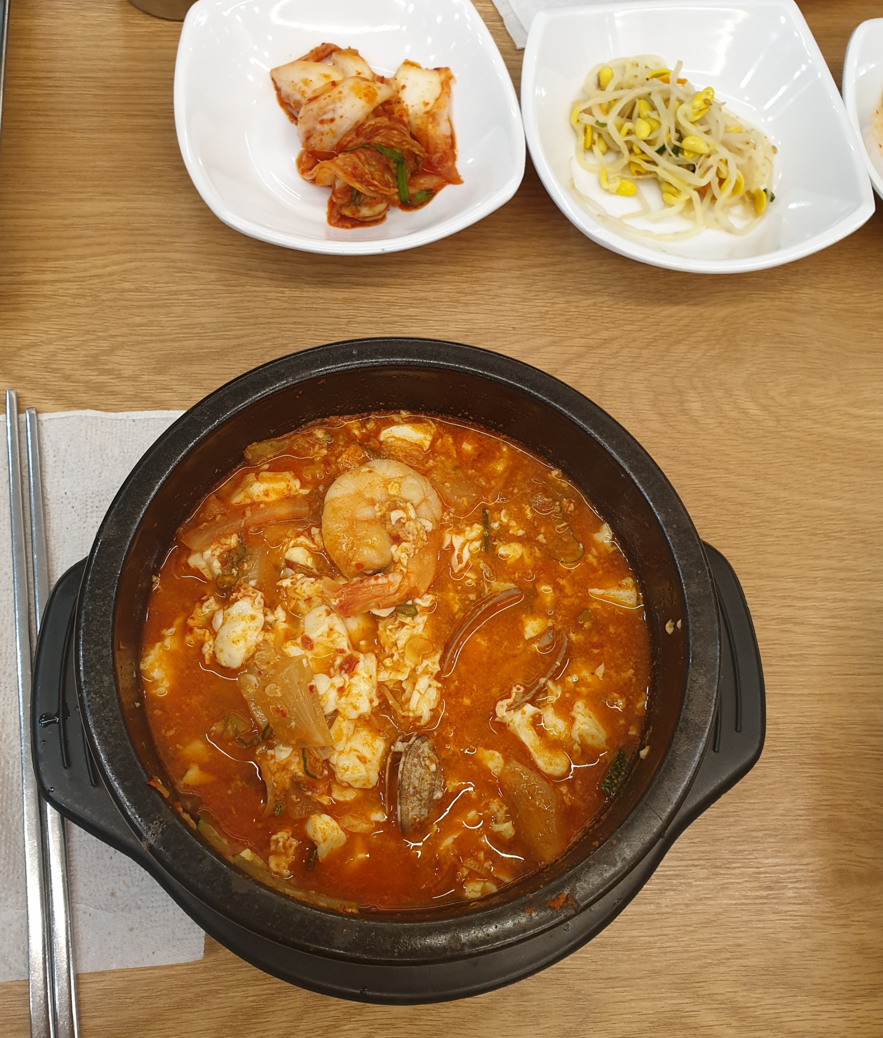 해물이 많이 들어간 순두부찌개는 평균적인 맛인데