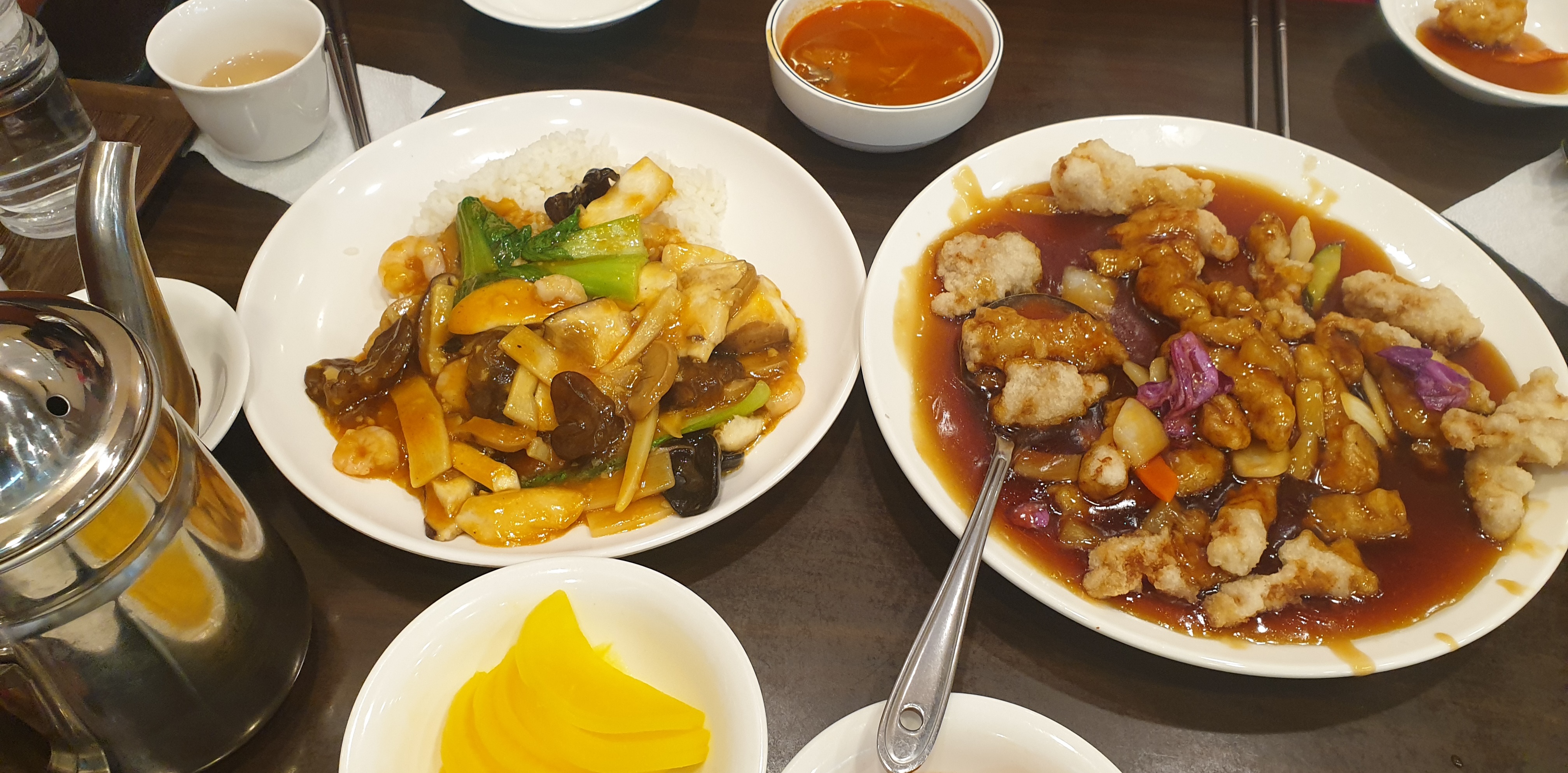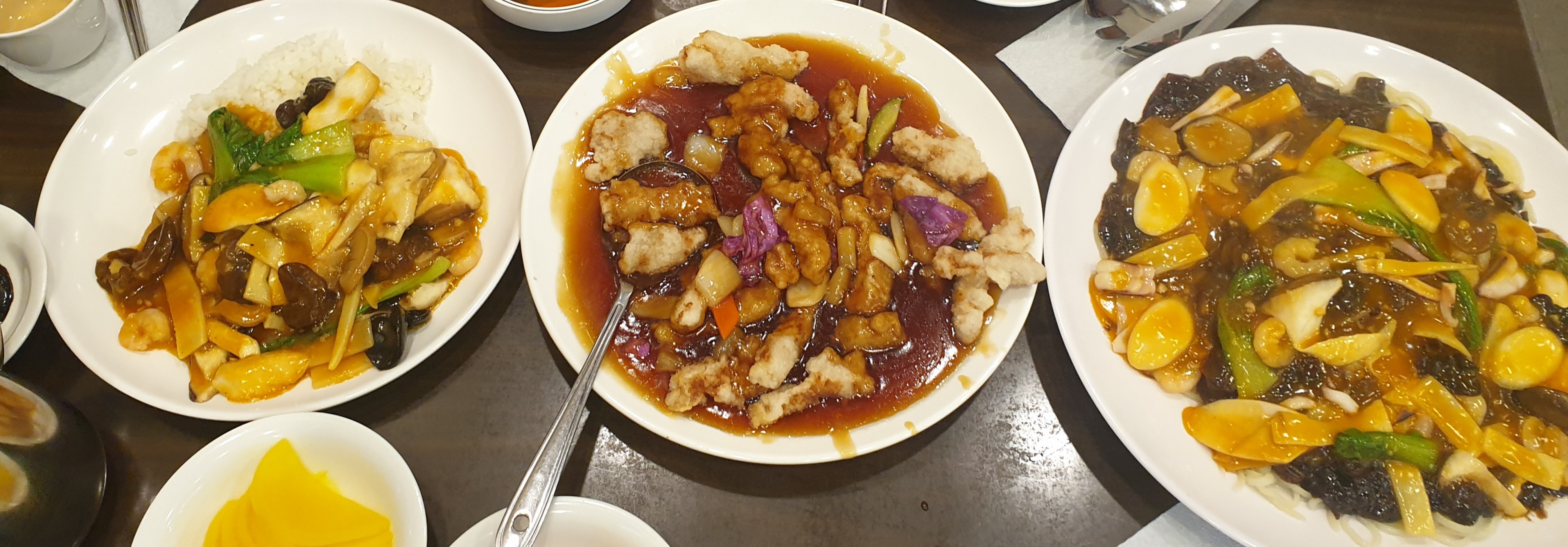 우리 일행(필자, 김ㅇㅇ, 똑순)은 쟁반짜장과 등심탕수육 그리고 버섯덮밥을 각각 주문했는데..