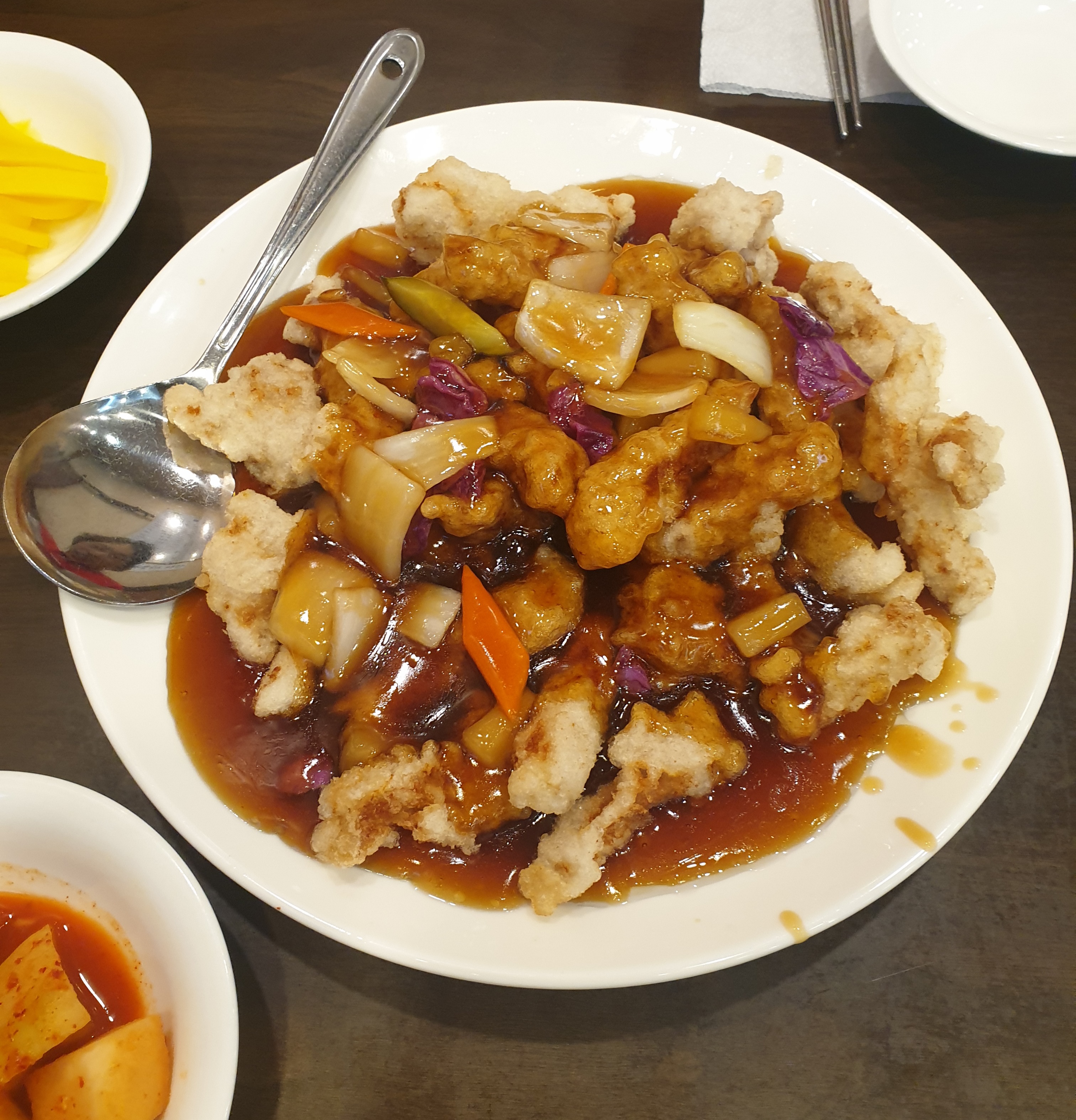 탕수육도 고기 육질이 부드럽고 튀김옷도 적당하여, 겉은 바삭하고 속은 촉촉한 소위 겉바속촉으로 식감이 최고였다.