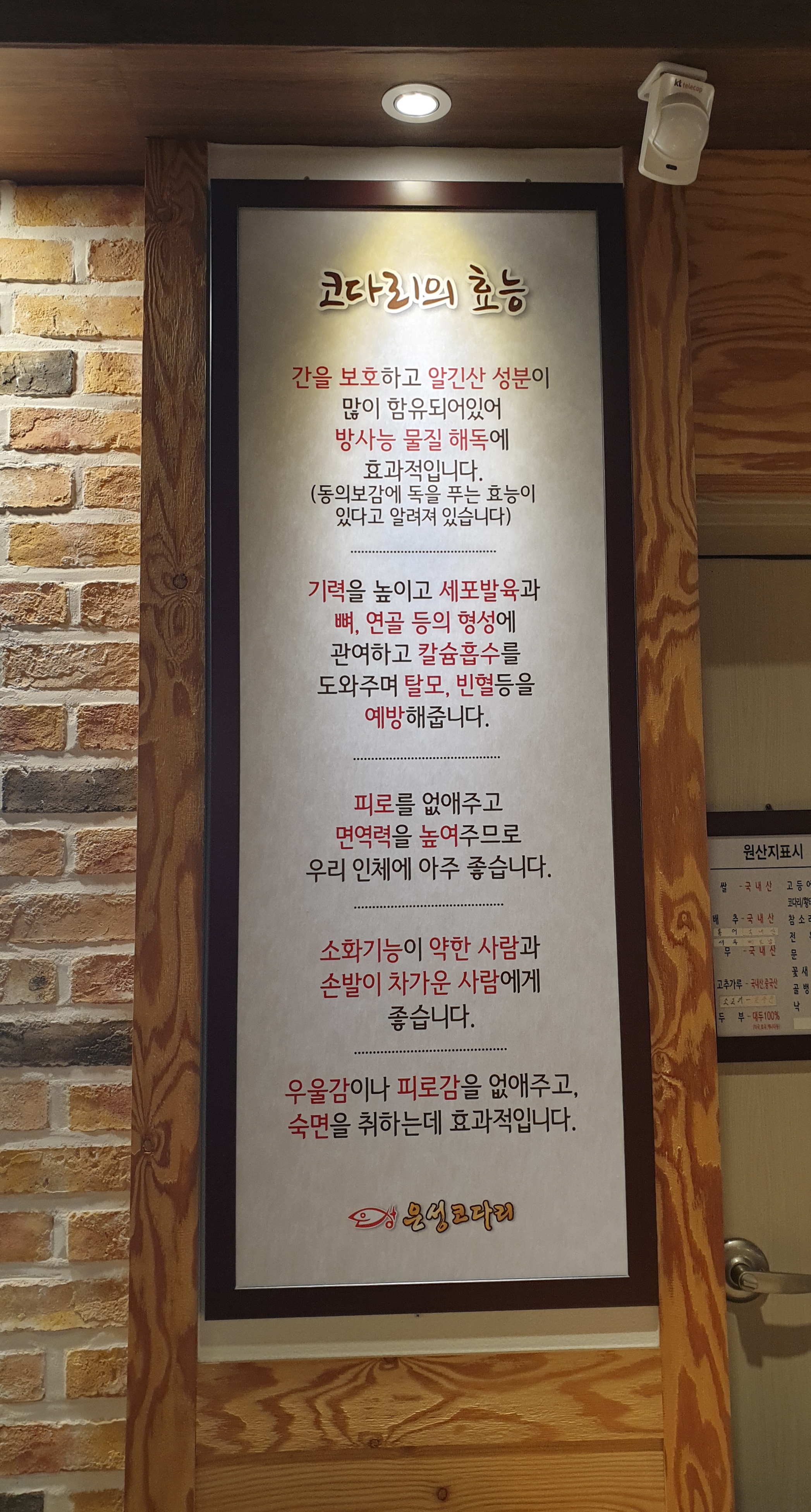 [코다리의 효능 - 식당내부에 쓰여있는 내용 발췌]