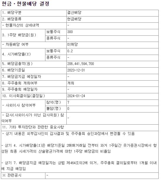 3) 배당기준일 : 2023년 12월 31일
