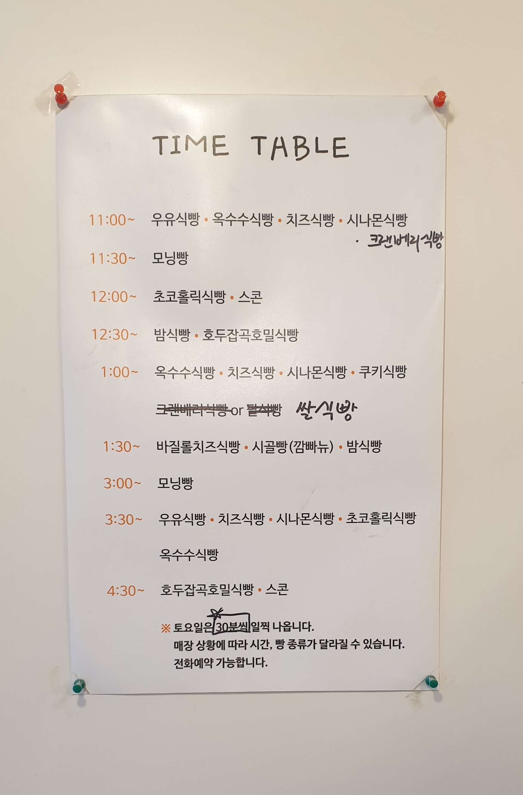 빵집 규모가 작아 포장위주로 판매하고 있는데 단골들이 꾸준히 찾기에 일찍 마감하는 경우가 많다고 한다. 그러므로 언니의 식빵가게는 식빵이 나오는 시간(아래 사진 참조)에 맞춰가면 뜨끈뜨근한 식빵을 헛걸음하지 않고 사 올 수 있다.