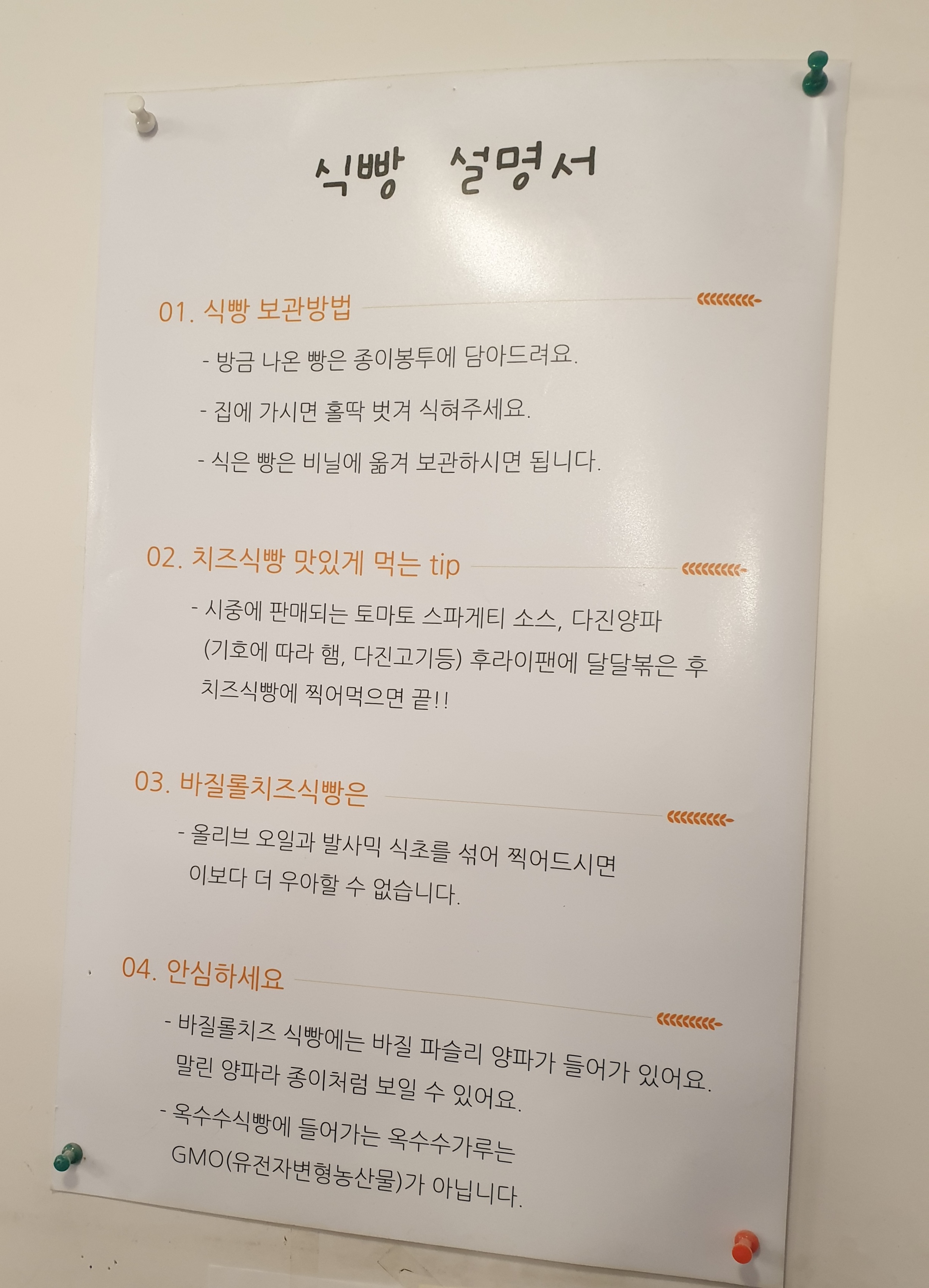 식빵 설명서 안내문도 벽면에 붙어 있는데,