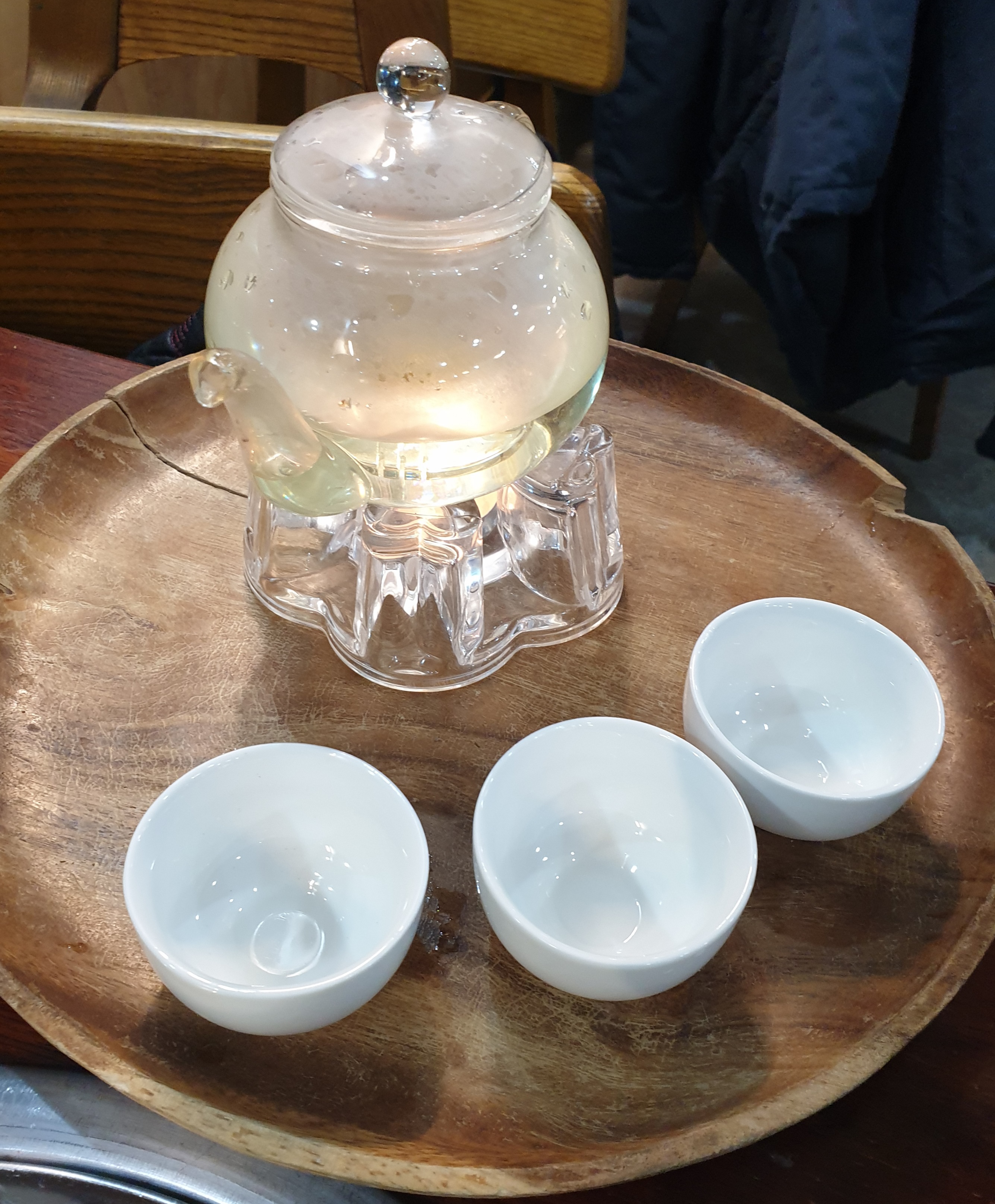 디저트로 향이 진한 따뜻한 국화차가 나오는데 후식으로 입안을 상큼하게 하는 데는 제격인 음료이다.