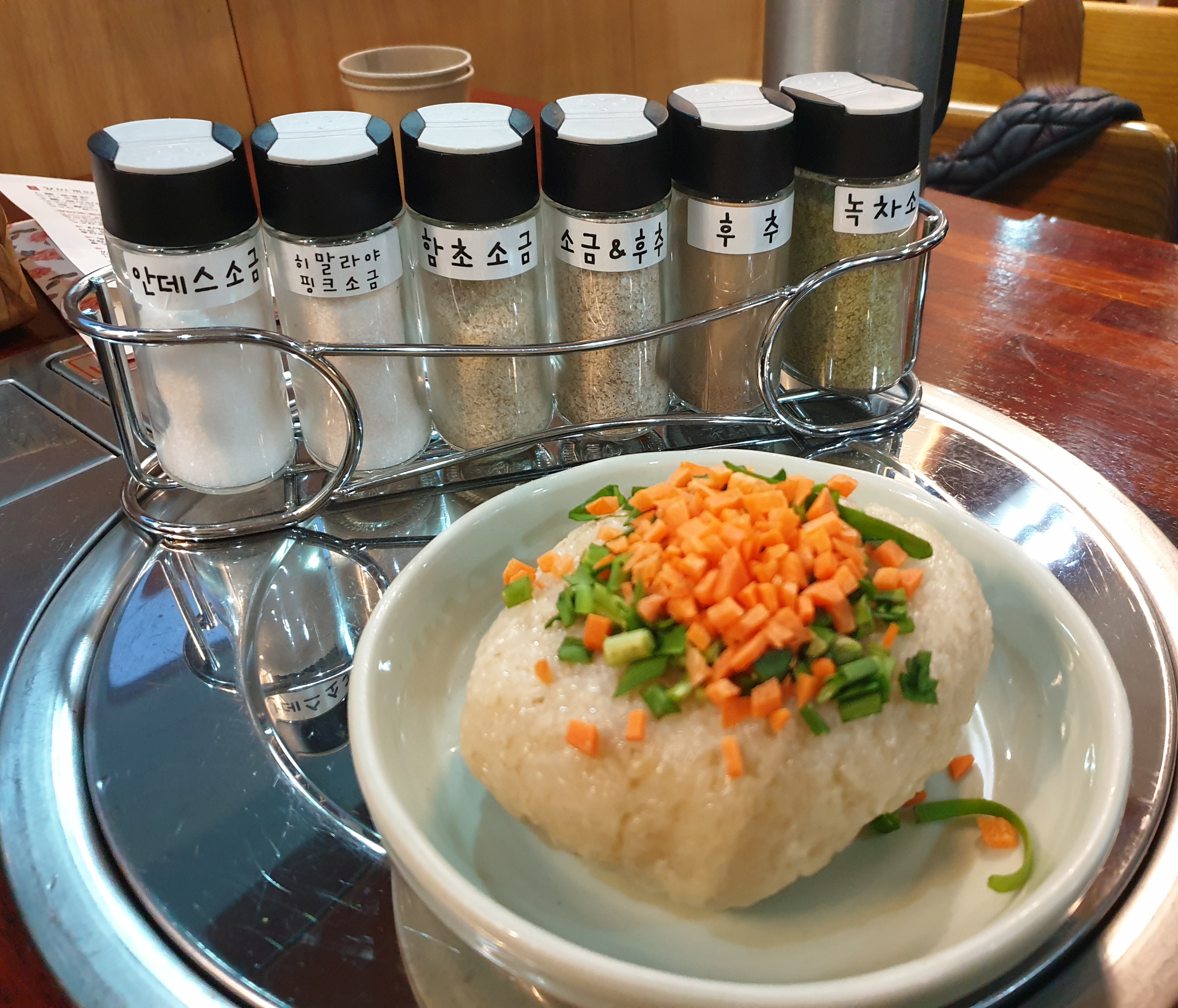 안데스소금, 히말라야소금, 함초소금 등 사진에서 보는 바와 같이 6가지 소금이 준비되어 있기에, 담백한 맛을 즐기면서 먹을 수 있다