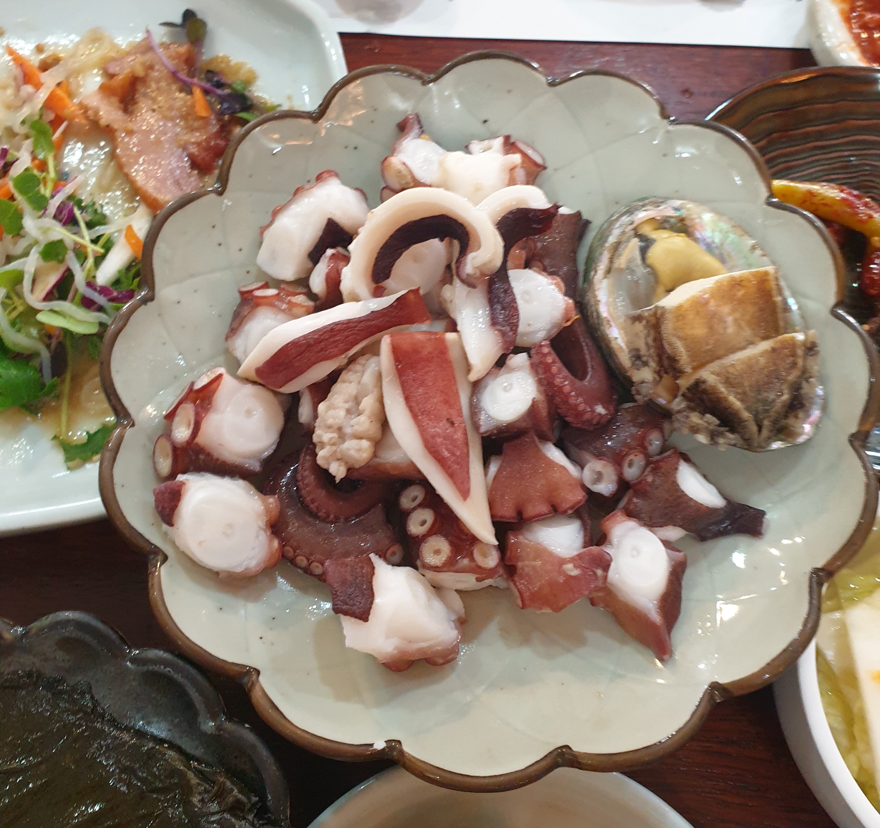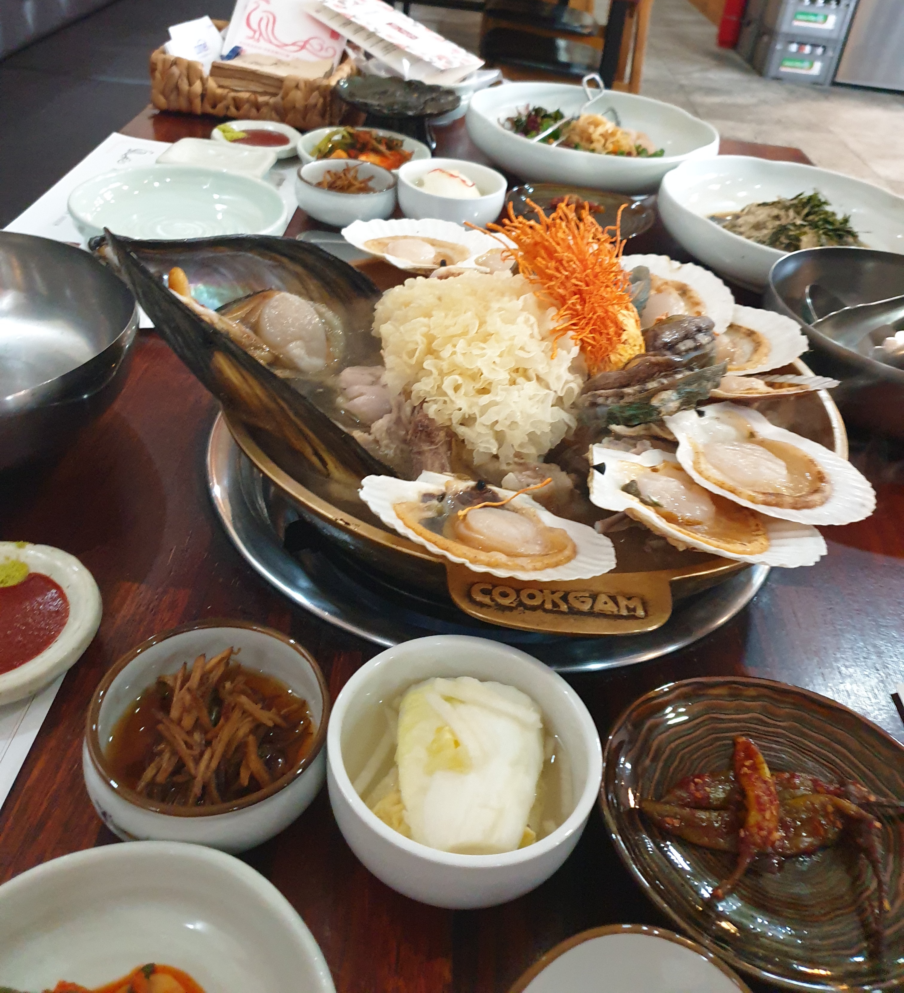 바당용왕님의 보양식인 해신탕은 토종닭과 자연산 활문어, 전복, 가리비, 키조개 등 해산물이 더해져 맛과 보양식으로 최고이다. `맛은 재료다`라는 말처럼 좋은 재료를 사용하다 보면 가격은 좀 나가지만 좋은 재료를 사용하기에 건강에도 좋고 맛도 좋은 보양식이다. 어느 정도 끓으면 키조개와 가리비를 주인이 직접 손질해 주며, 문어와 전복도 따로 가져가서 먹기 좋게 손질해서 가져다준다. 진한 국물까지 다 먹고 나면 정말 몸보신이 된 것 같고, 다음날 원기가 왕성해지는 느낌도 든다.