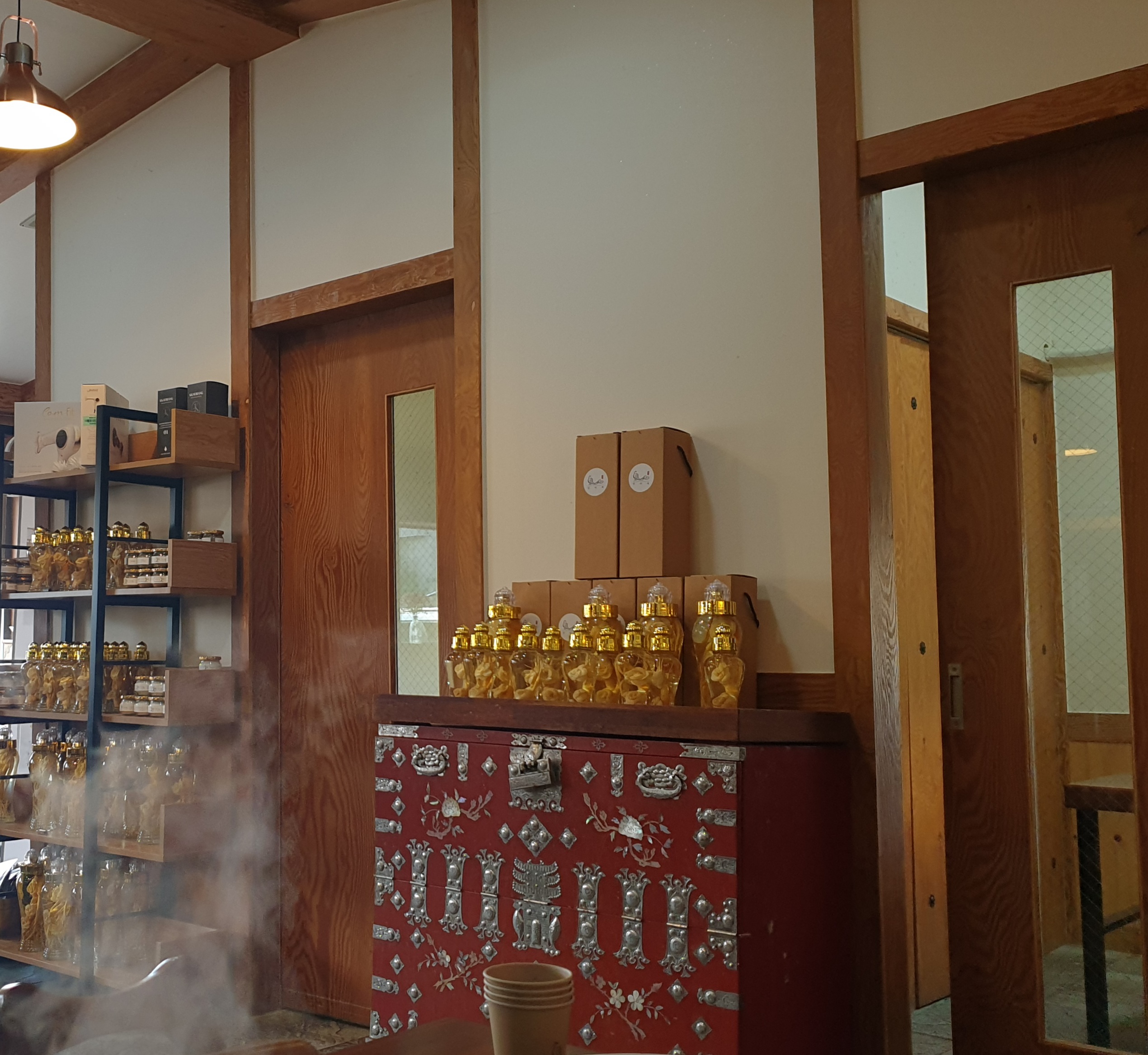 강원도 인제에서 공수한 청정 탄산수 필례약수에 인삼, 황기, 헛개, 엄나무 등 10여 가지 약재를 넣어 120℃에서 한 시간 이상 삶아낸 보양식이다.