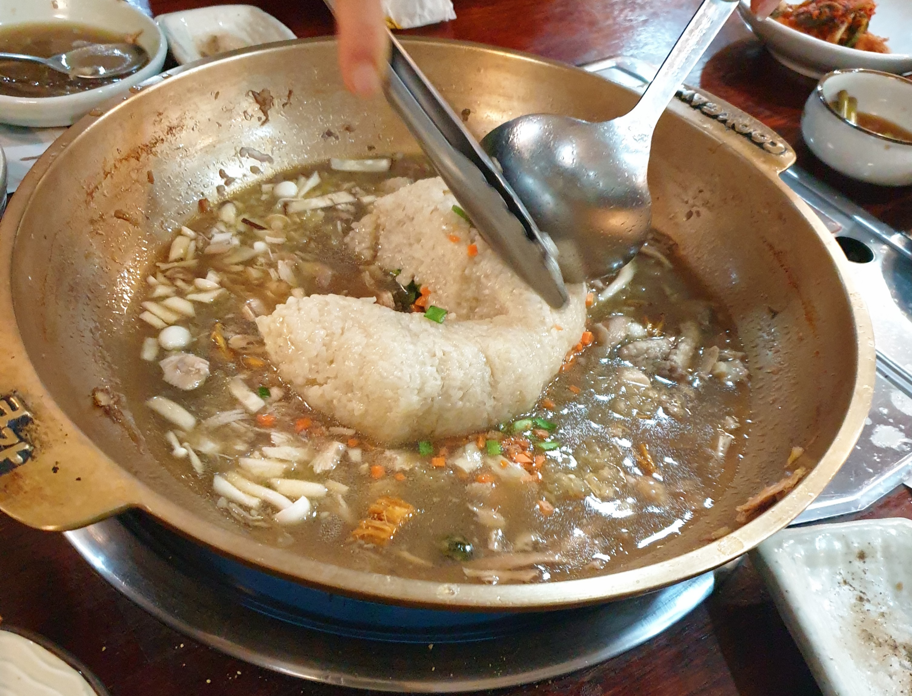 마지막으로 찹쌀로 만든 죽을 끓여먹을 수 있는데 이 또한 별미다. 이미 닭요리로 배가 가득인 상태인데도 죽 자체가 담백하면서도 워낙 퀄리티가 좋아 계속 먹게 된다.