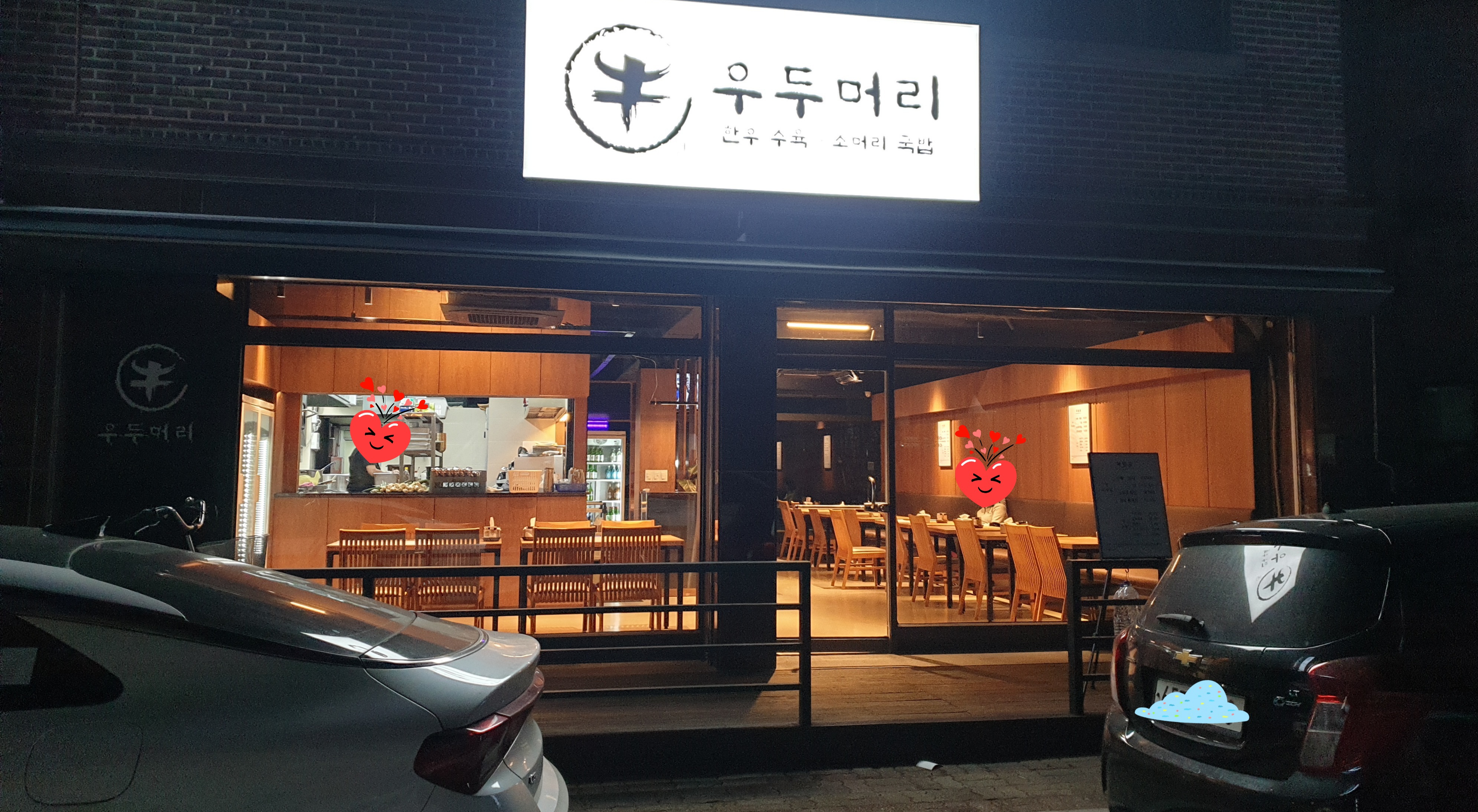 성남시 분당 미금역 근처 먹자골목에 위치한, 한우 수육과 소머리 국밥 등을 전문으로 하는 식당인 우두머리를 다녀왔다. 외부에서 내부가 훤히 들여다 보이는 식당으로, 식당 내부는 오픈되어 있는 주방 포함해서 청결·깔끔하며 고급스러우면서도 널찍한 편이라 편안한 식사를 즐길 수 있다.