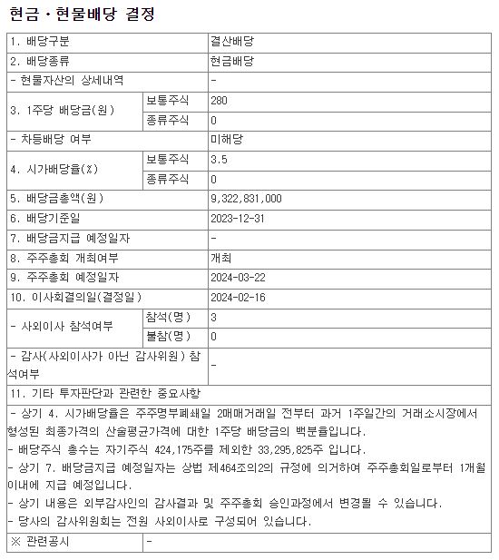 2024년 2월 16일 배당에 관한 공시를 하였다.