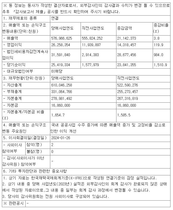 - 매출액 : 5,769억 6,662만원 (전년 대비 3.8% 증가)