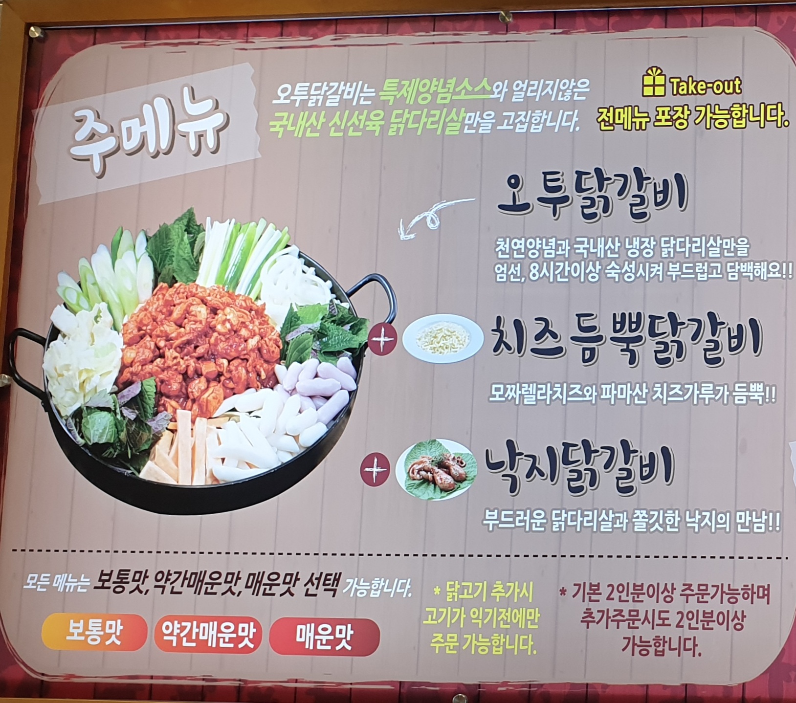 또한 오투닭갈비는 수입산이나 냉동닭이 아닌 100% 국내산 프리미엄 닭다리살만을 사용하고, 고객과 신뢰를 위해 정량을 정확히 준수하며, 불량식자재가 아닌 검증된 신선하고 안전한 식자재만을 사용한다고 한다.