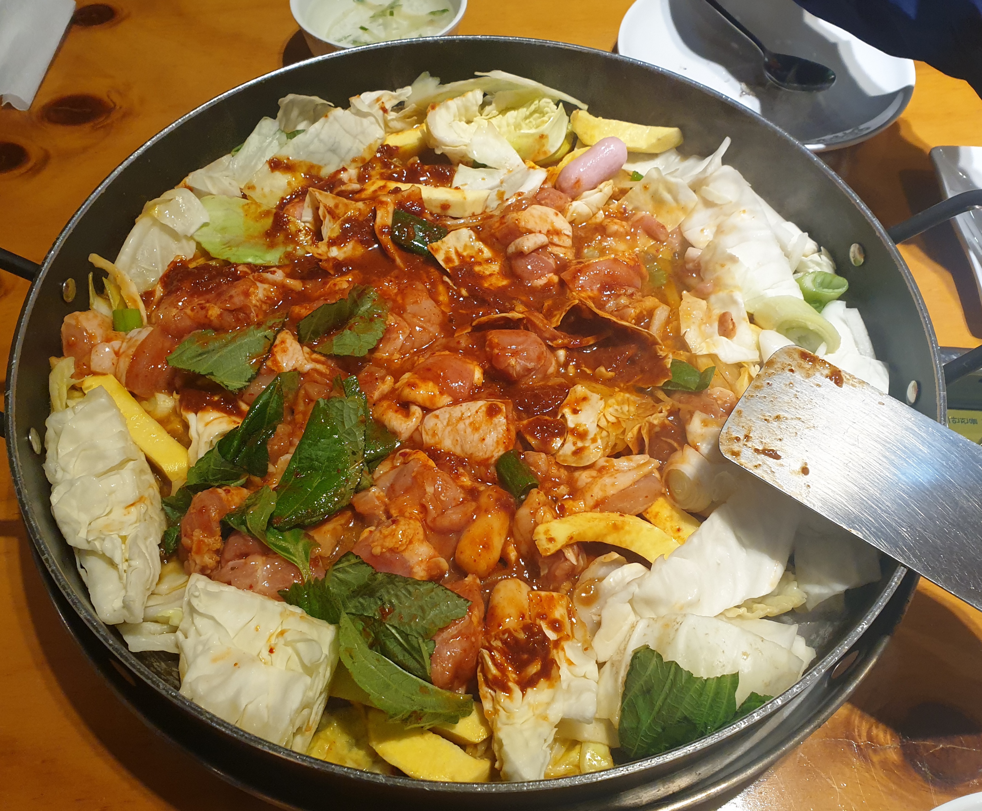 닭도 100% 국내산 닭다리를 사용하기에 부드럽고 야들야들하여 입에서 살살 녹는 느낌이라 치아가 약한 어르신들도 부담 없이 먹을 수 있는 닭갈비집이다.