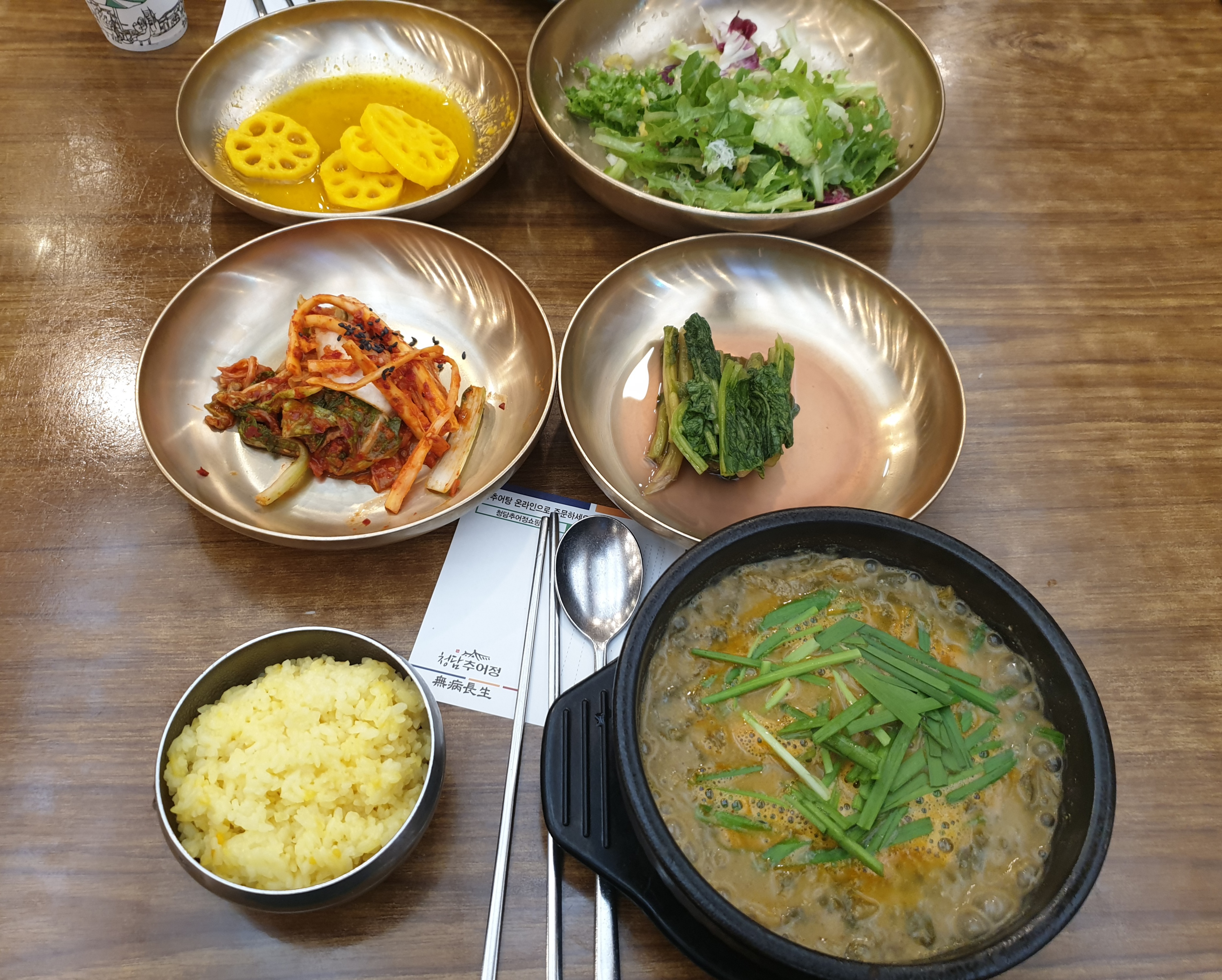 청담추어정이 인기 있는 이유 중 또 하나는, 단백질과 무기질이 풍부한 추어탕 자체에 잡내가 없어, 남녀노소 거부감 없이 맛있게 먹을 수 있다는 점도 있지만, 그보다는 추어탕 본연의 맛과 더불어 강황밥을 비롯해 놋그릇에 담아 나오는 밑반찬들이 고급지고 깔끔하며 맛깔나다는 것도 한몫한다는 것이다.
