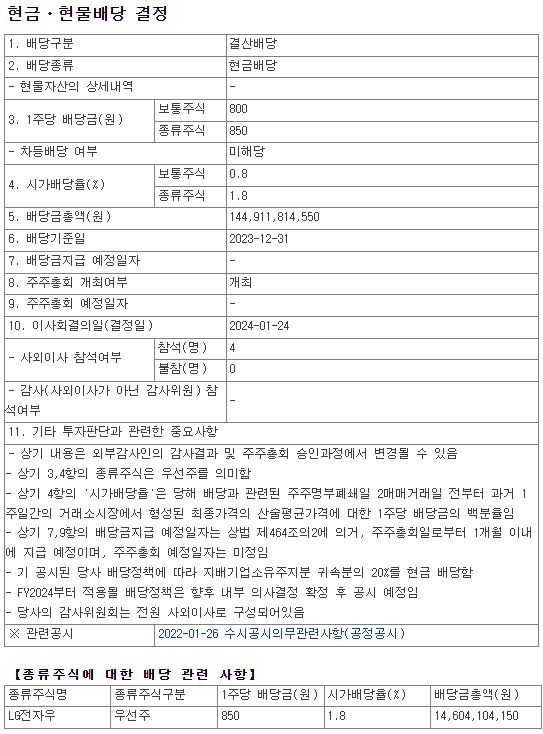 | 현대차 실적 및 배당금 (2024년 1월 공시) (0) | 2024.02.05 |