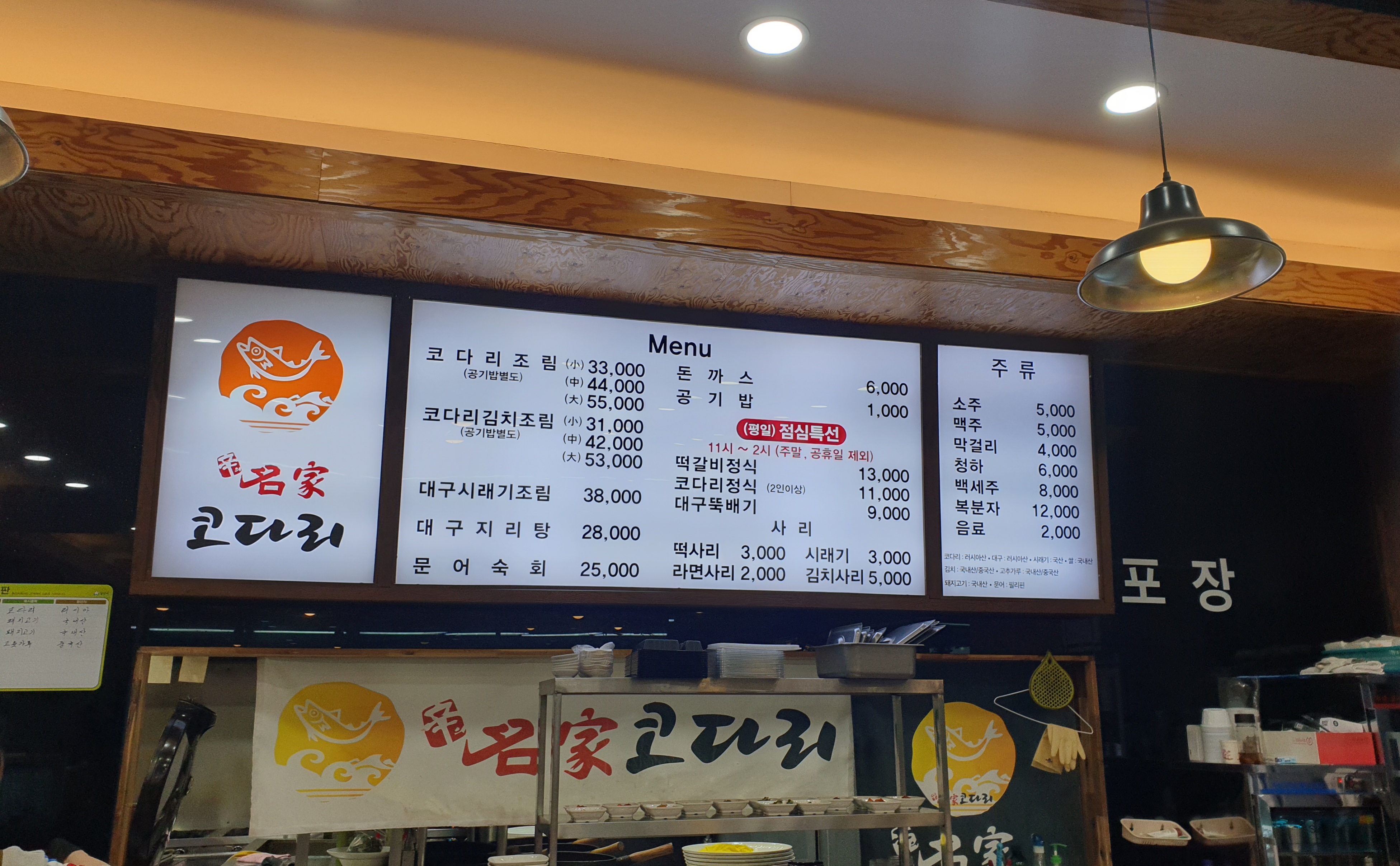 참고로, 평일 11시~14시까지 점심특선으로 코다리정식을 판매하는데, 이 메뉴가 인기라고 한다. 시간이 되는 사람은 점심시간을 이용해서 코다리정식을 드시는 것을 추천한다.