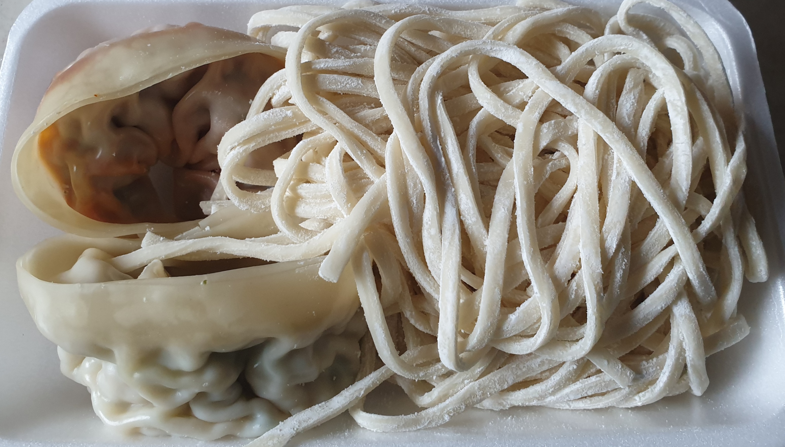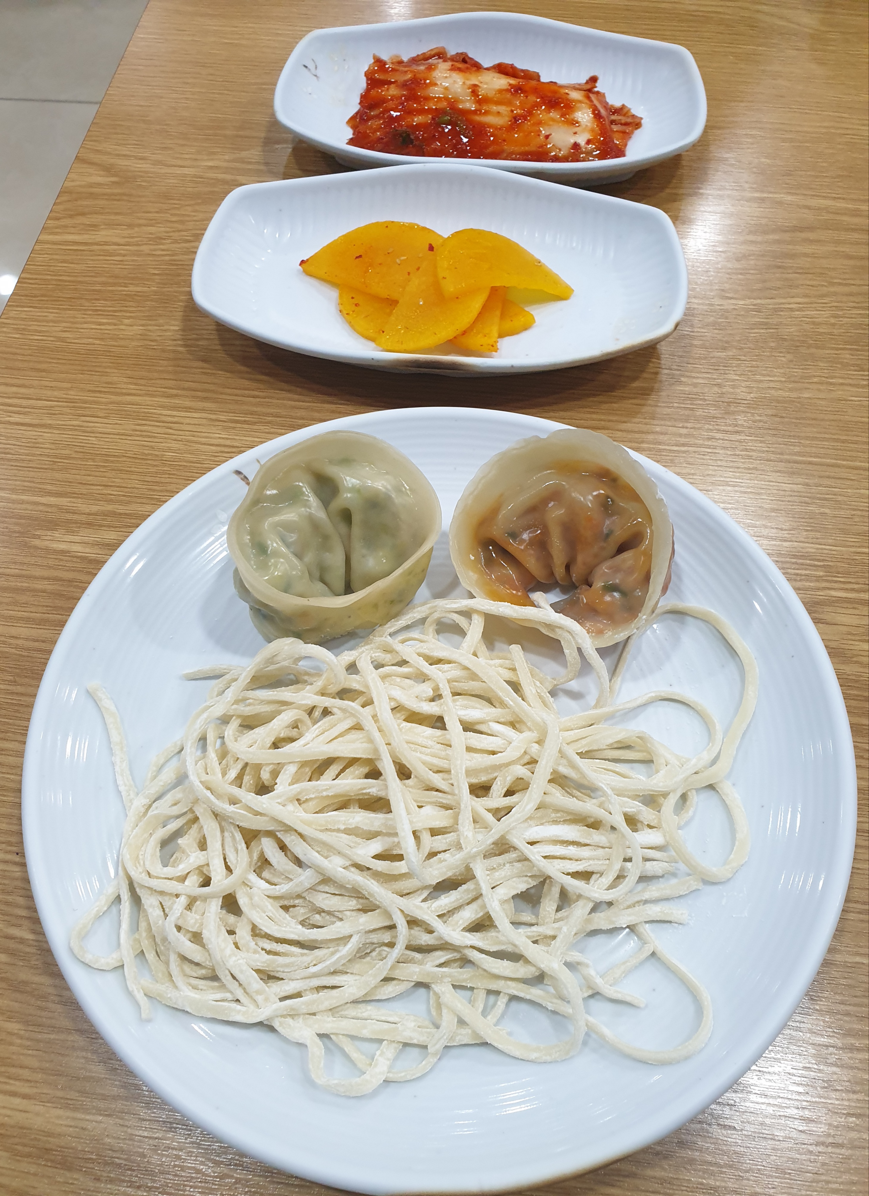 만두와 칼국수 모습인데, 실제는 사진에서 보는 거와는 달리 만두가 상당히 큰 왕만두다. 만두는 1인당 4개씩 나오며, 칼국수가 추가로 나오기에 양이 의외로 많다.