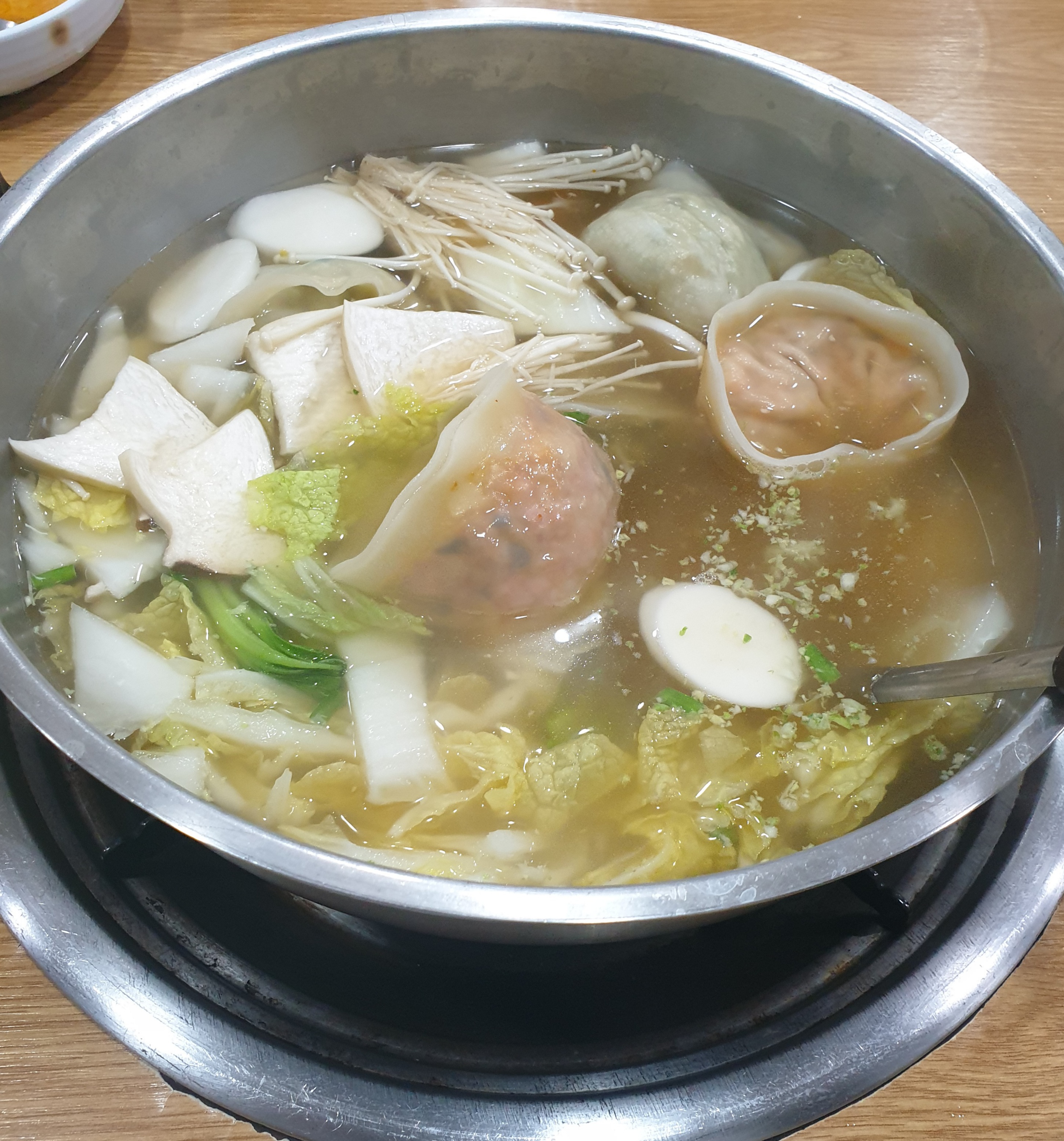 보글보글 끓으면 단맛이 나는 배추 등 야채부터 꺼내 먹고, 어느 정도 익으면 떡과 만두를 꺼내 먹으면 된다.