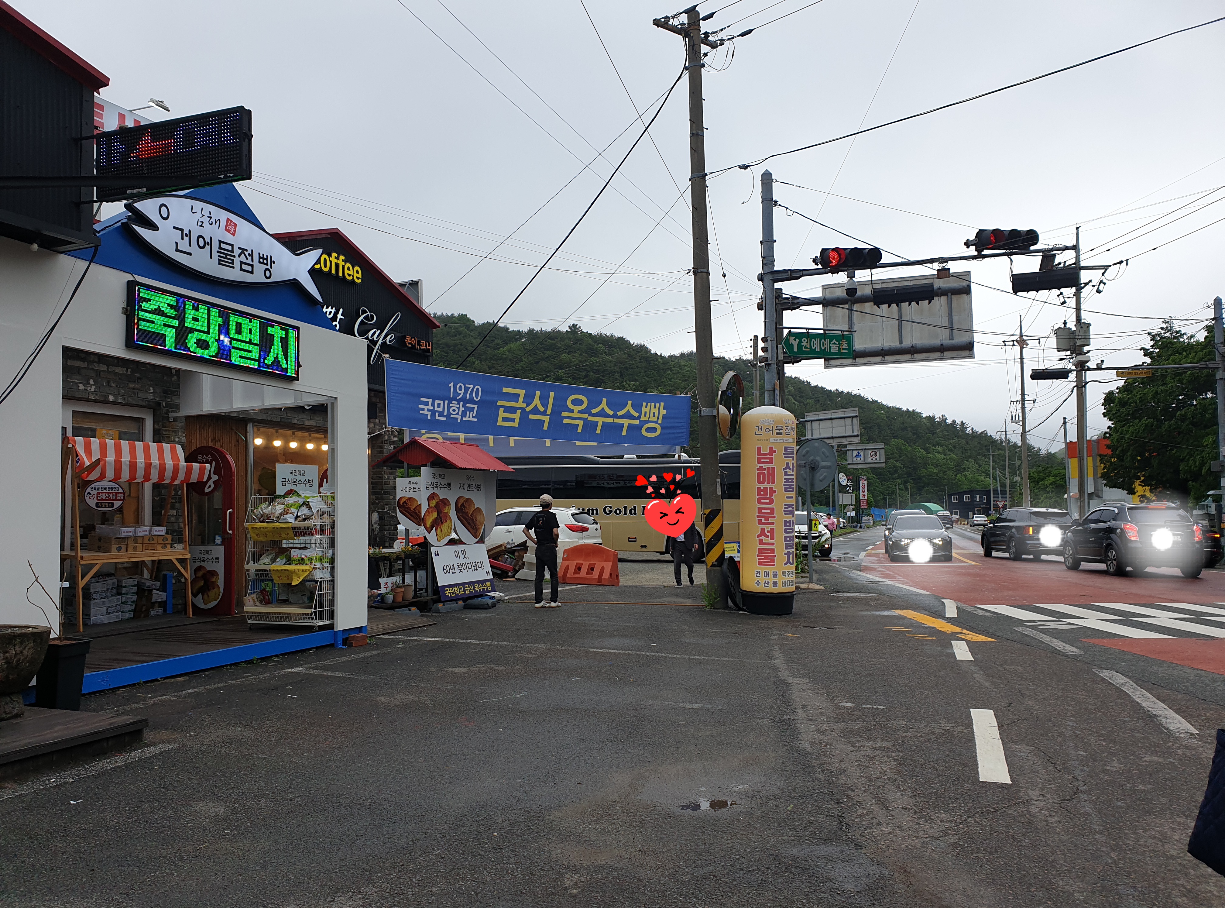 대청마루 옆에 주차장이 있으며, 추억의 급식옥수수빵과 죽방멸치도 판매하고 있다.