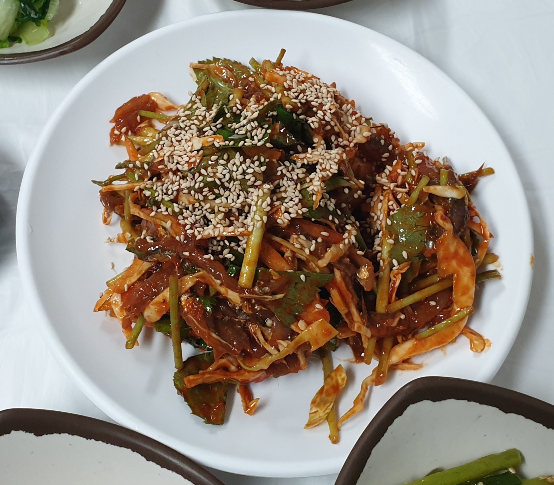 멸치회무침은 말 그대로 남해의 향토색이 짙은 맛이며, 가장 중요한 초장은 매실을 이용했다고 하는데, 새콤하고 달콤한 맛이 그만이다.