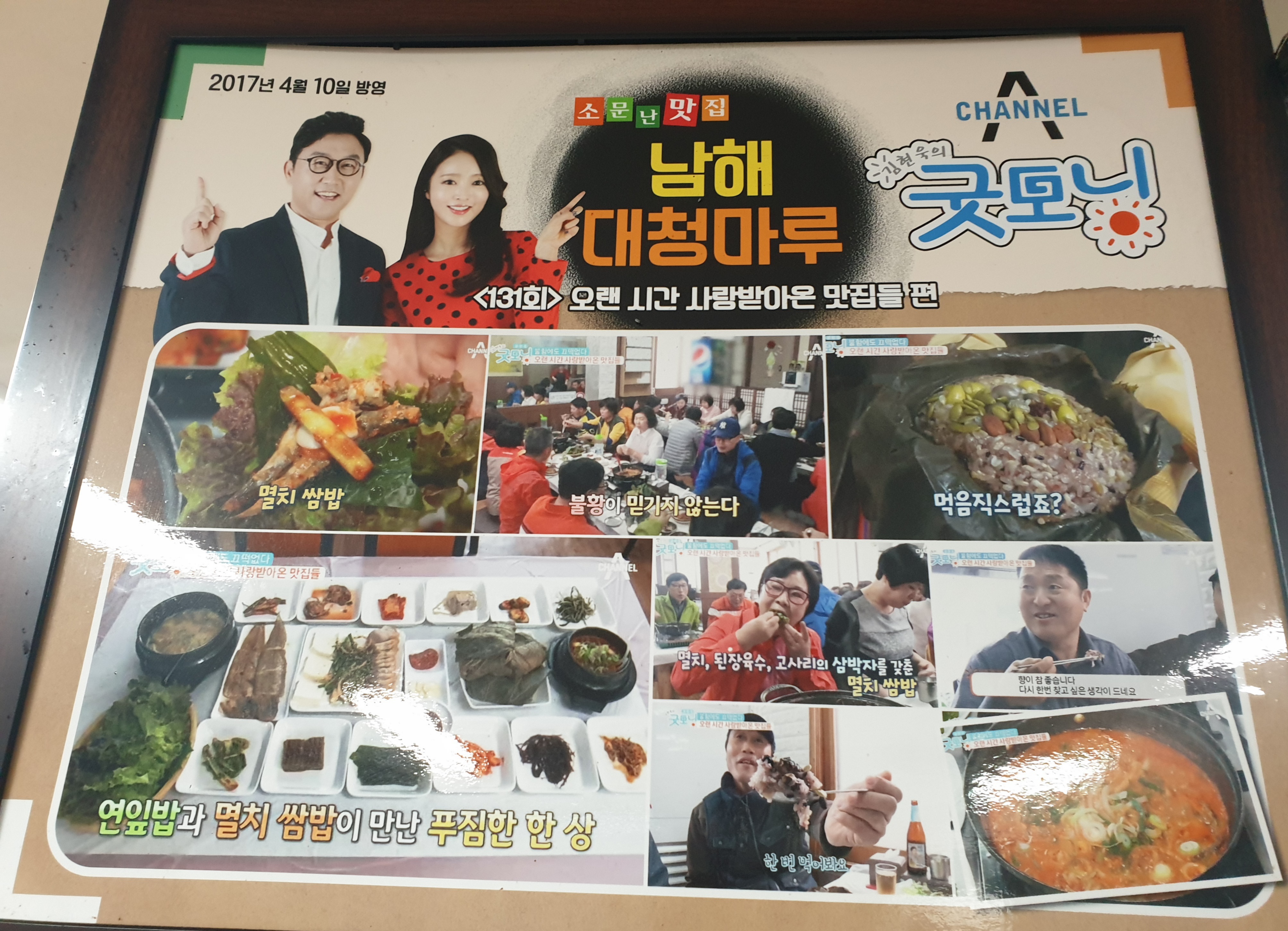 중국인 등 외국인들이 별로 없고 복잡하지도 않아, 조용히 힐링하는 사람들이 자주 찾는 보물섬 남해도는 남해시금치, 남해 마늘과 더불어 죽방멸치가 유명하다. 오늘은 이런 멸치로 요리하는 맛집인 남해대청마루 방문기를 포스팅합니다.