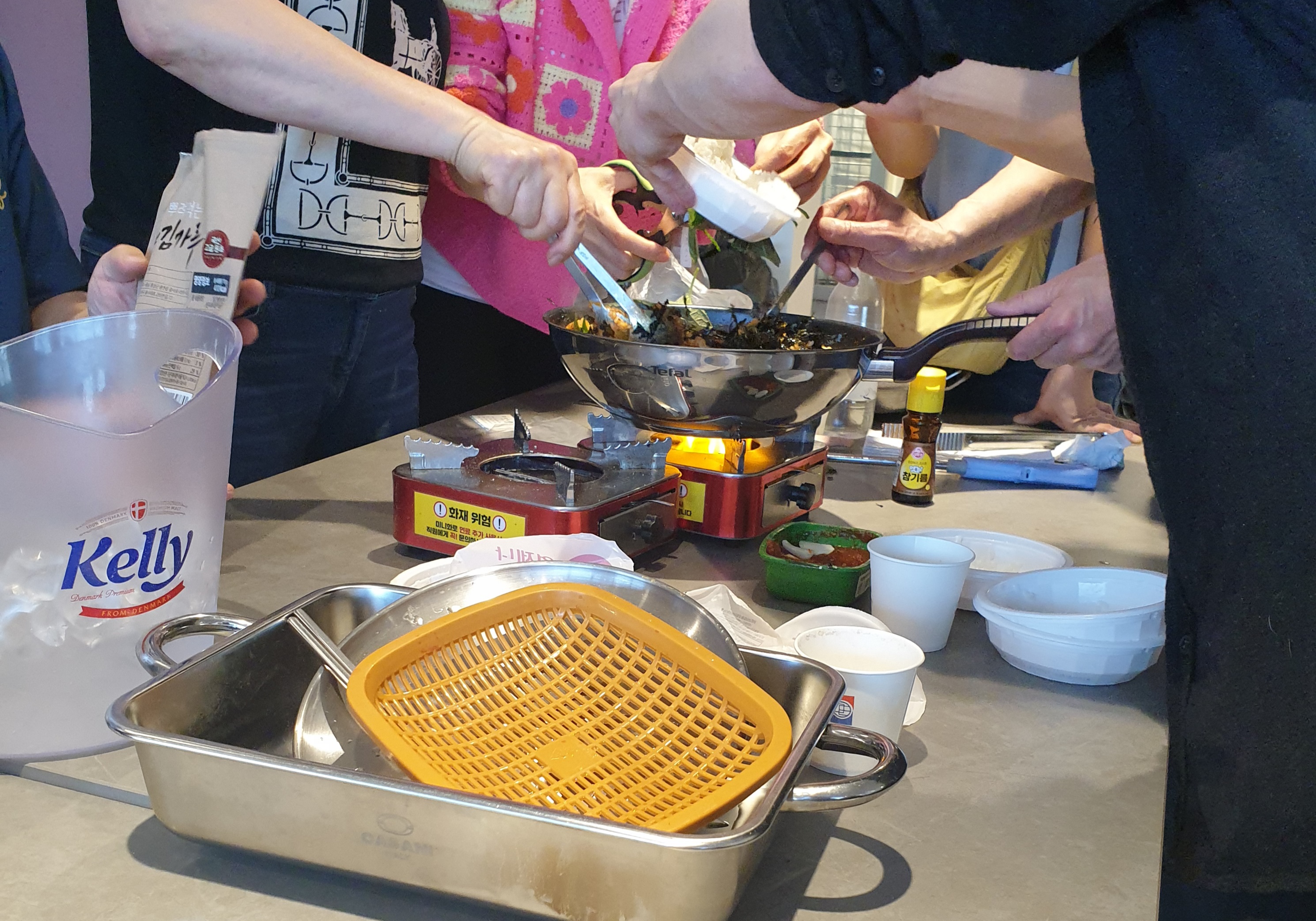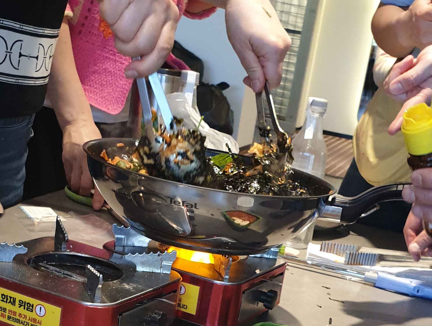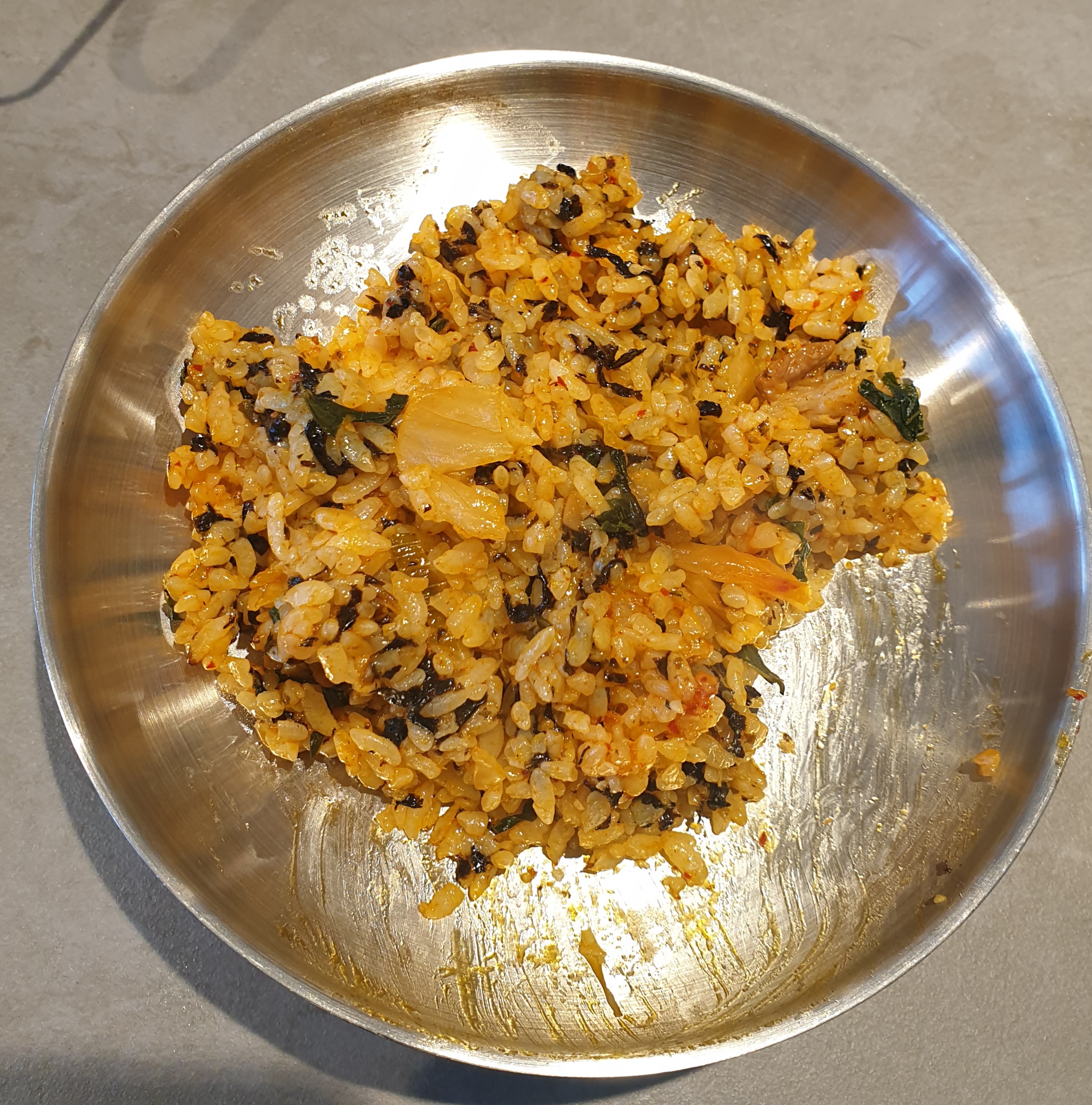 고기와 새우 등으로 배를 채운 후, 마무리는 볶음밥이라고.. 햇반과 나머지 양념을 이용해서 볶음밥을 만들었는데, 이 세상 어느 음식보다도 맛있는 볶음밥이라 모두들 게눈 감추듯이 먹어 치웠다