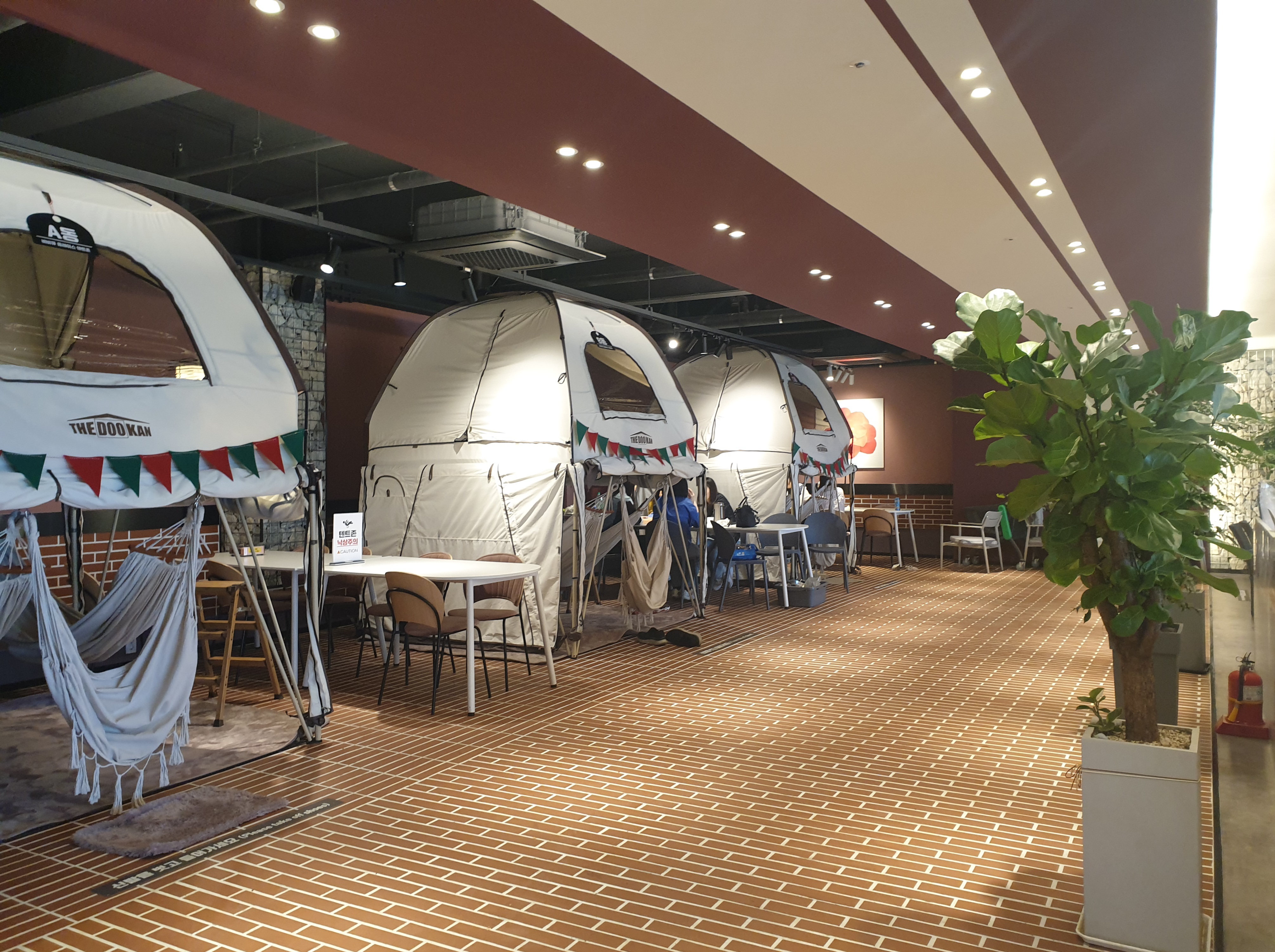 입구에 들어서면 편히 쉴 수 있는 텐트존이 보인다.