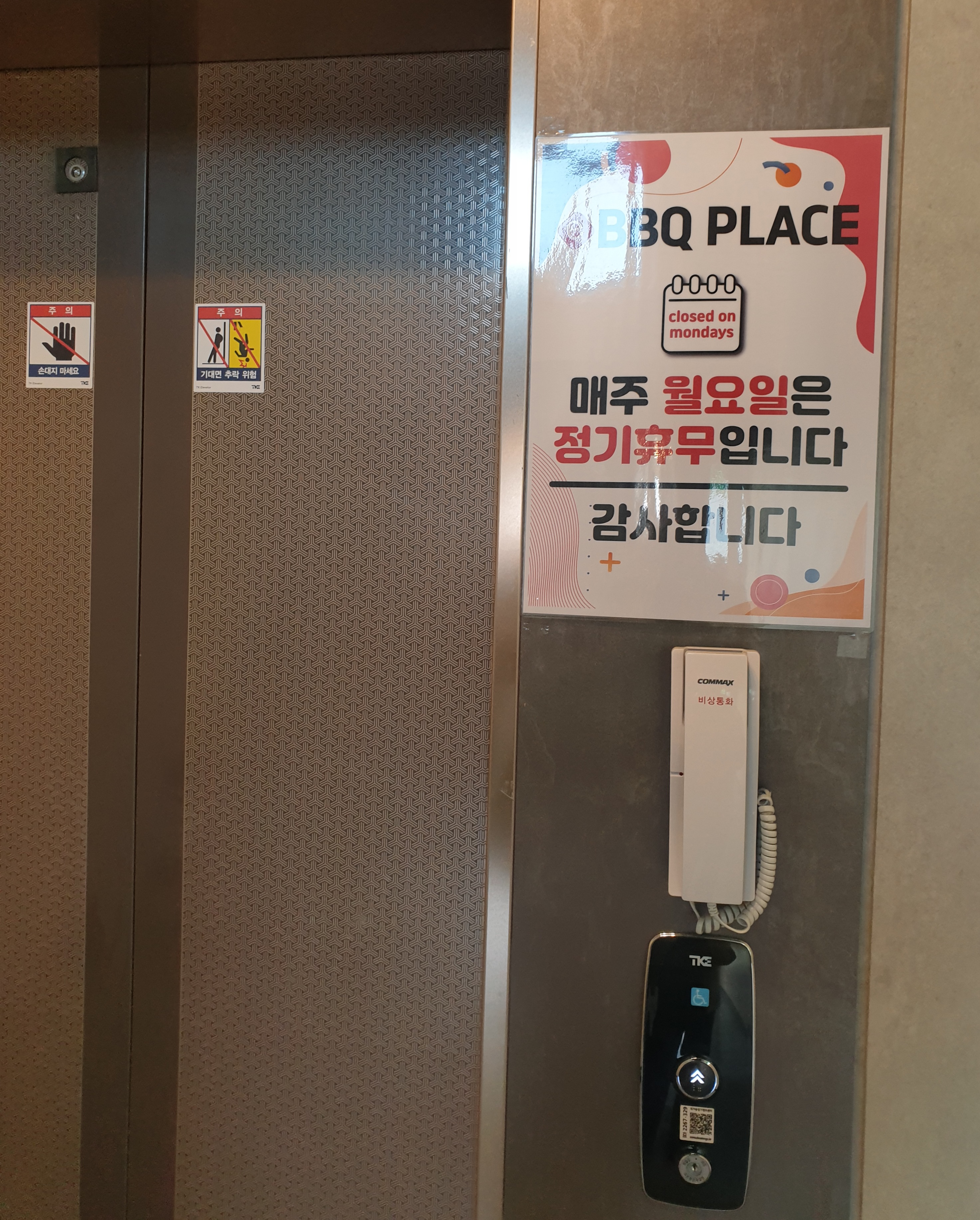 식자재를 구매한 후 엘리베이터를 타고 예약한 2~3층에 위치한 BBQ PLACE로 올라가면 된다.