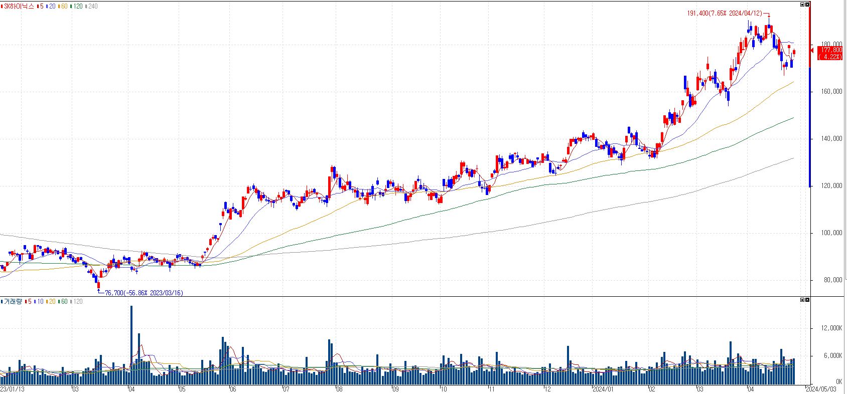 SK하이닉스는 AI 가속기 시장을 장악하고 있는 엔비디아에 4세대 HBM(HBM3)을 현재 독점 공급하고 있으며, 5세대(HBM3E) 물량도 내년 물량까지 다 팔린 것으로 알려지는 등 첨단 HBM 시장을 앞장서서 선도하고 있는 중이라고 한다.