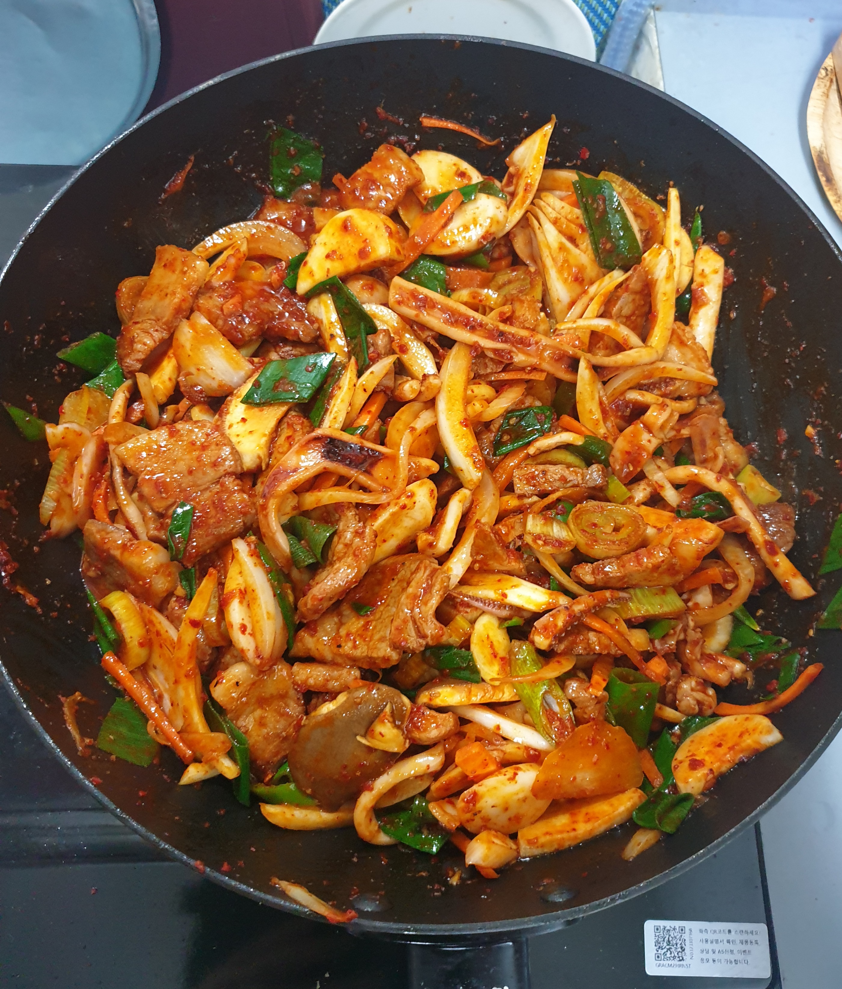 ※ 삼겹살과 오징어를 양념에 버무려서 하루정도 재워놓은 후 해 먹으면 더 맛있는 요리가 된다.